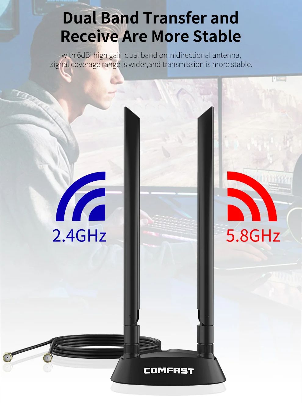 Удлиненные антенны 2*6 дБи, поддержка двухдиапазонного приема