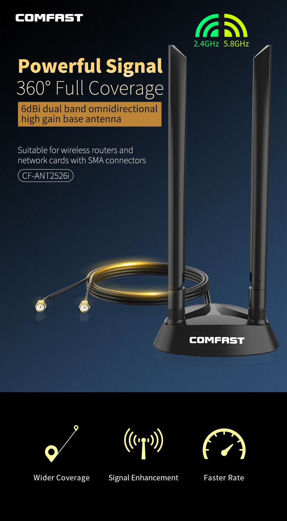 Двухдиапазонная всенаправленная расширенная антенна Wi-Fi с высоким коэффициентом усиления