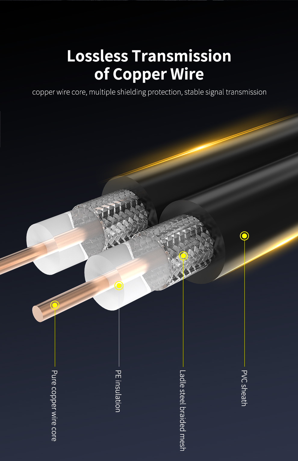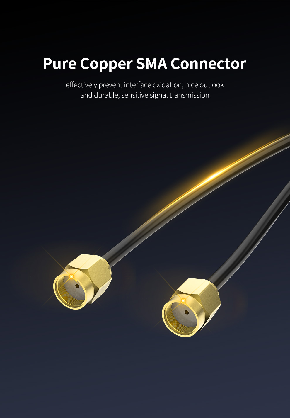 Высококачественный сердечник из чистой меди длиной 1,2 м, который можно свободно удлинять, чтобы разместить положение антенны и улучшить качество приема сигнала.