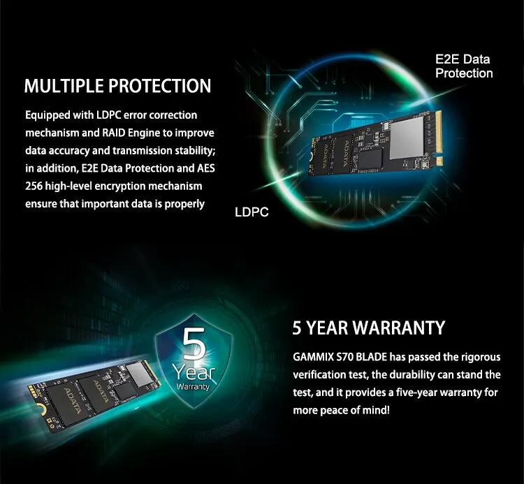 Технология PCIe Gen4 следующего поколения, твердотельный накопитель NVMe PCIe 4,0. Комбинация флэш-памяти TLC NAND и технологии PCIe Gen4 предназначена для заядлых геймеров и технически подкованных пользователей.