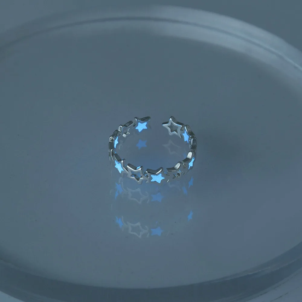 Adjustable Hollow Blue Star Luminous Ring Glow In Dark Silver Color Rings for Women Friends Birthday Gifts Fashion Jewelry Ring