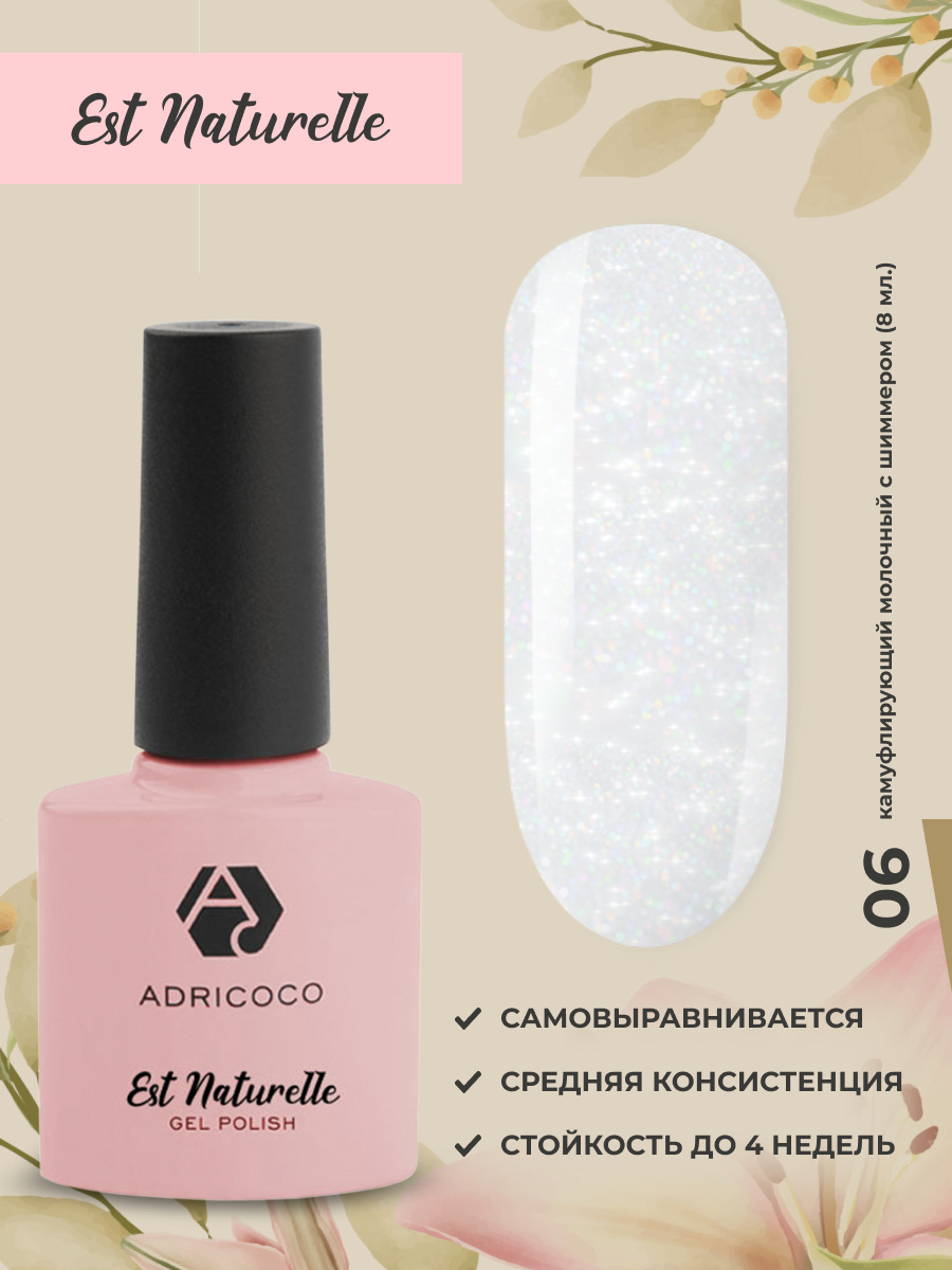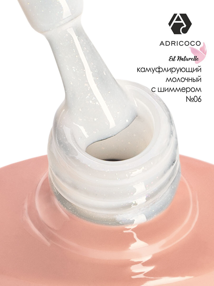 ADRICOCO Гель лак Est Naturelle №06 камуфлирующий молочный с шиммером (8 мл.) для ногтей камуфляжный
