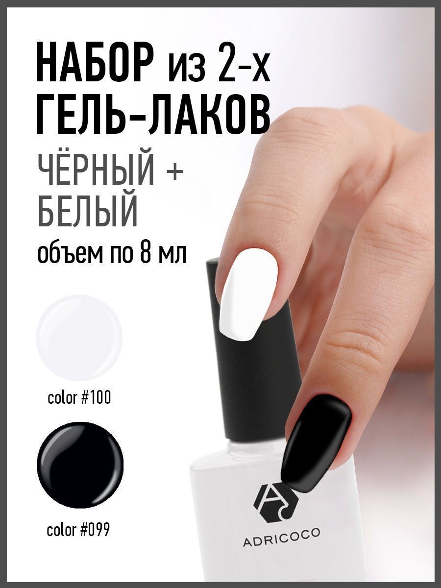 Adricoco Набор Черный + Белый / гель лак для ногтей черный + гель лак белый для ногтей