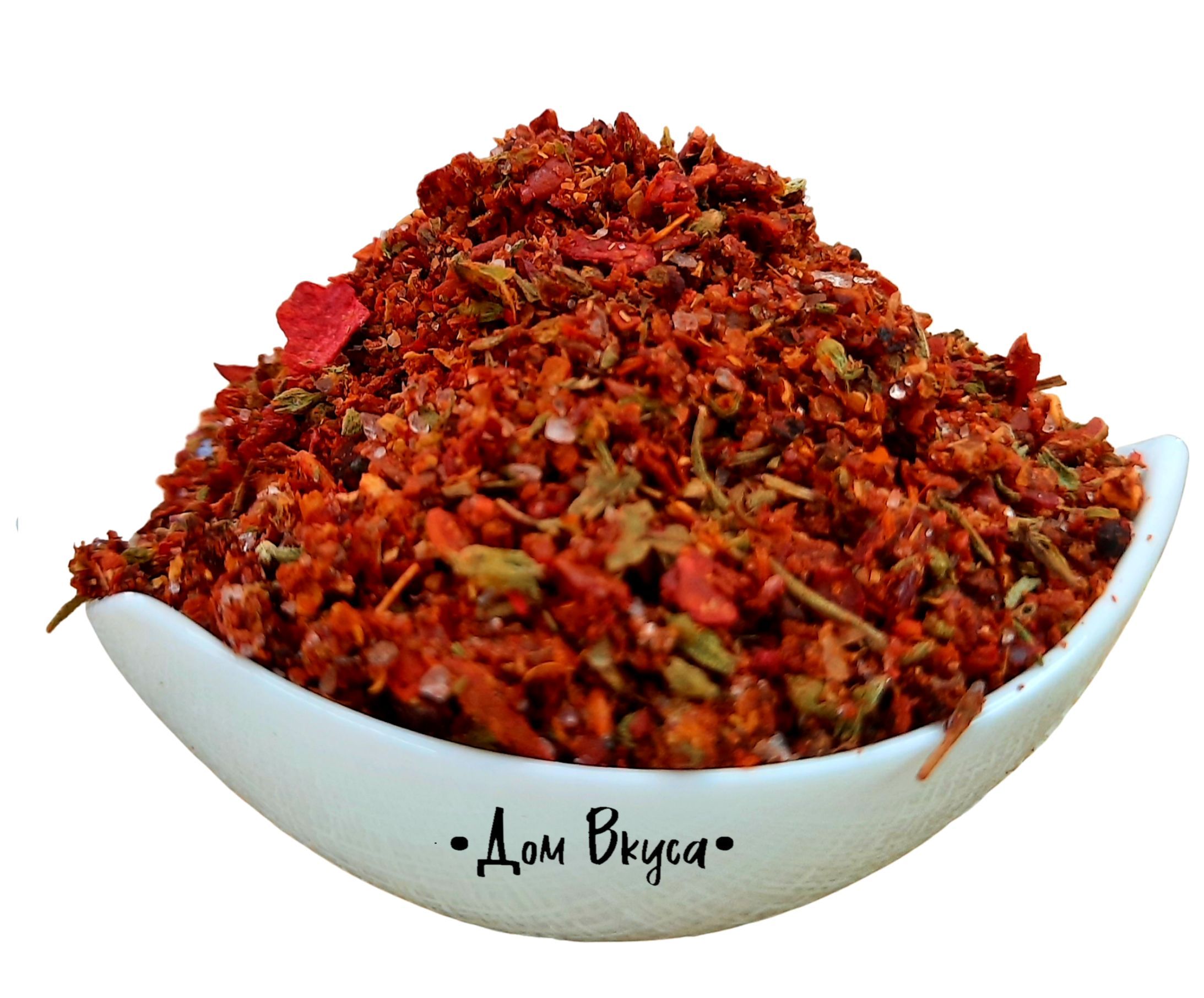 Пажитник, красный перец, красный перец острый, чеснок, семена кориандра, укроп, соль, хмели-сунели (состав базилик, петрушка, сельдерей, укроп, кориандр, лавровый лист, мята, чабрец, пажитник, иссоп, шафран , красный перец).
