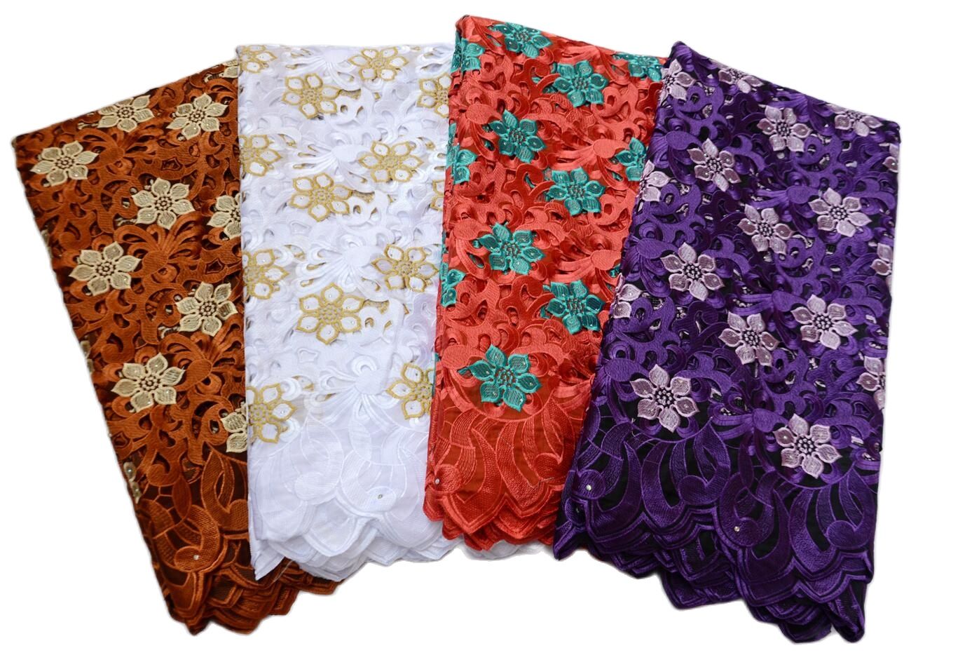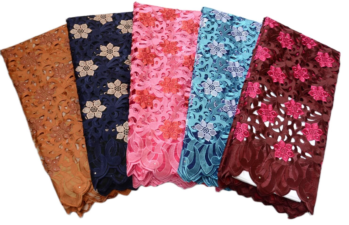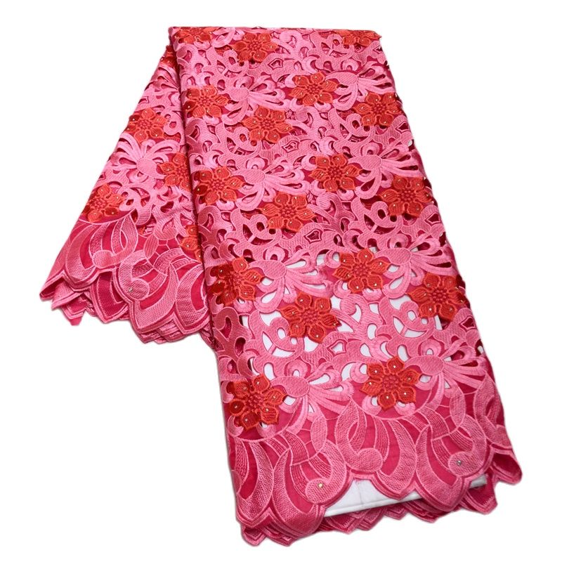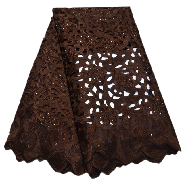 Африканская швейцарская кружевная ткань с отверстиями ручной работы для свадебных платьев, 5 ярдов Африканское кружево с вышивкой высокого качества, S8974, 2024