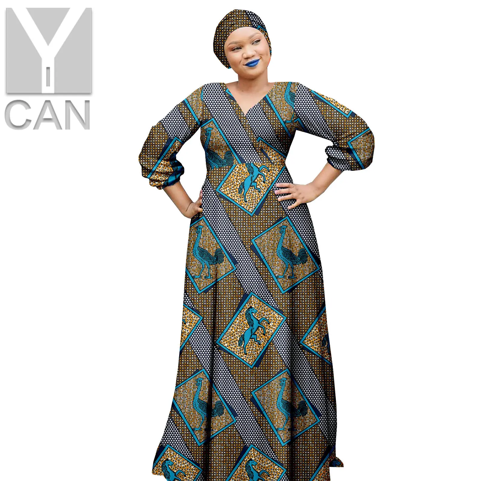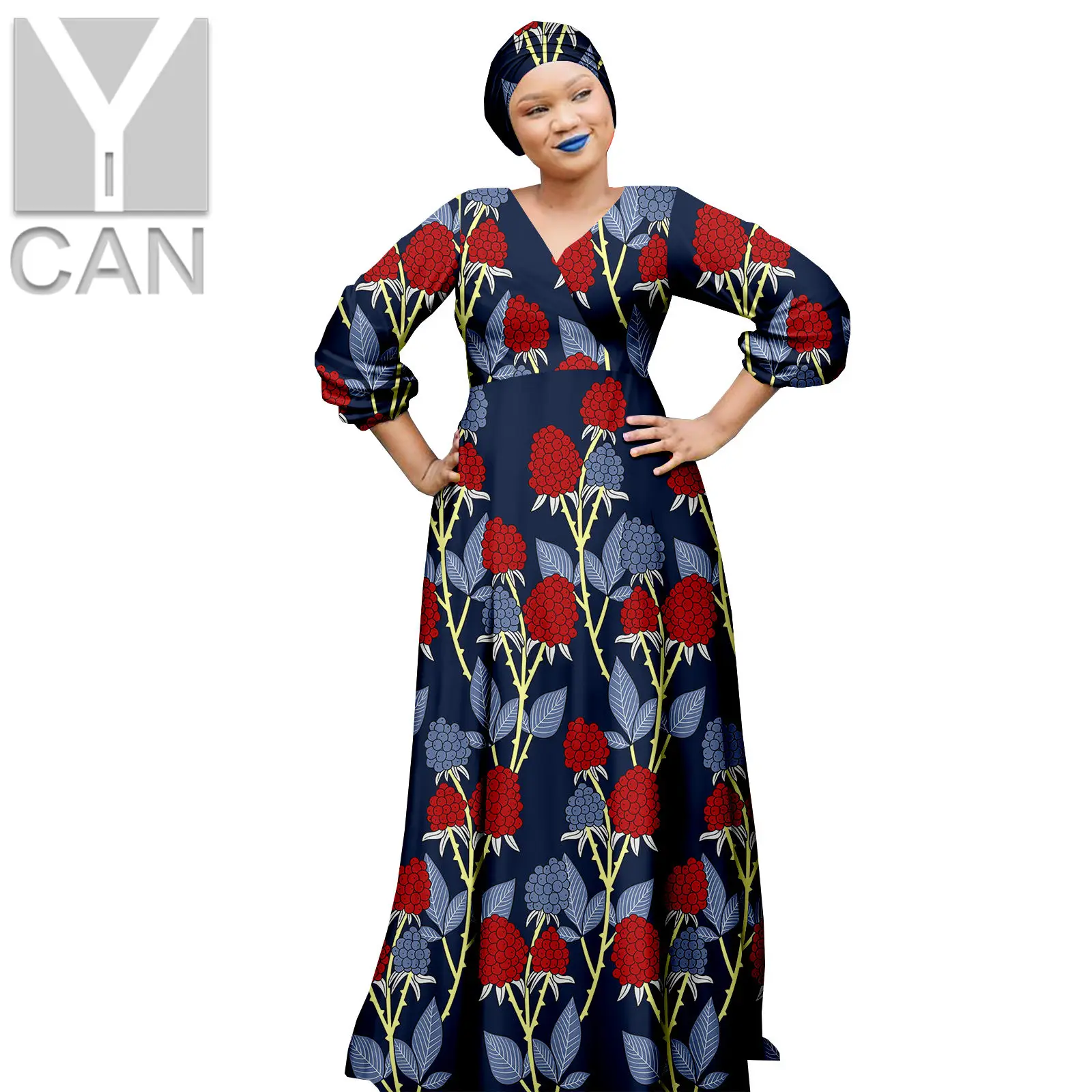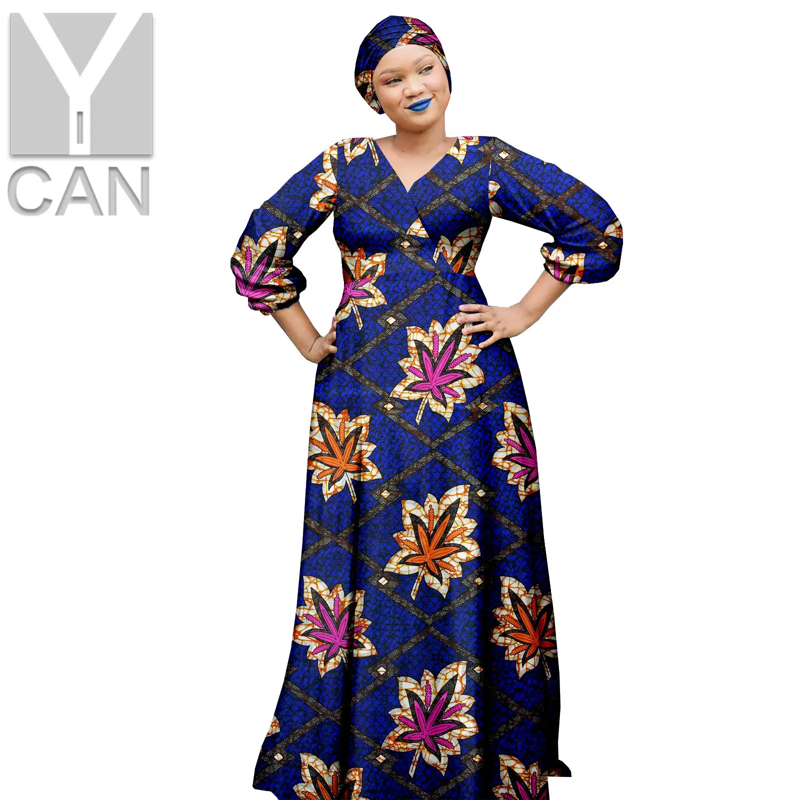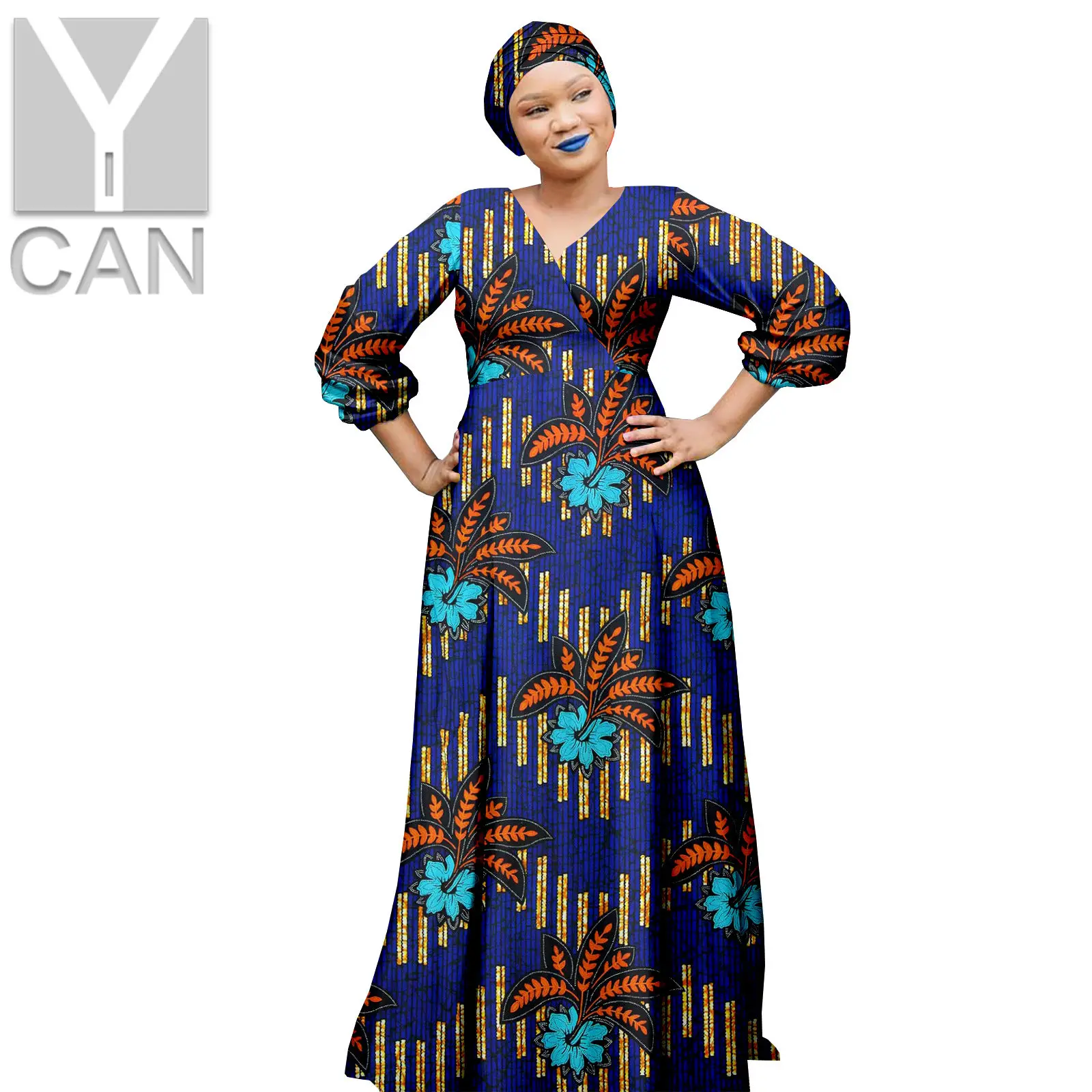 Африканские платья для женщин, Дашики, Анкара, v-образный вырез, длинные головные уборы с запахом, базин, роскошные наряды, вечерние свадебные платья Y2225017