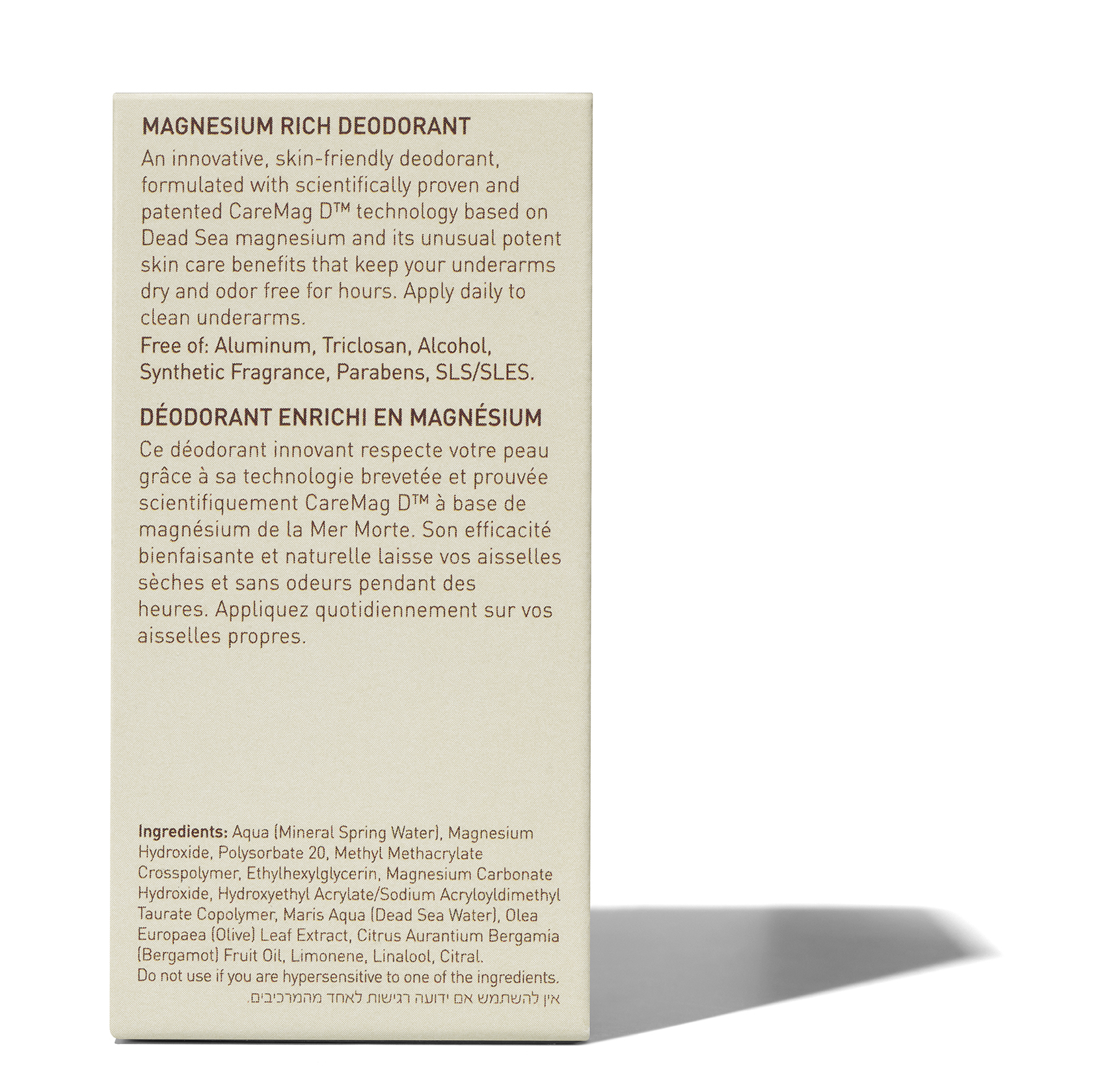 Aqua (Water), Ppg-15 Stearyl Ether, Oryza Sativa (Rice) Starch, Triethyl Citrate, Glycerin, Cetyl Alcohol, Zinc Ricinoleate, Tetrahydroxypropyl Ethylenediamine, Laureth-3, Propylene Glycol, Parfum (Fragrance), Cetearyl Alcohol, Cetearyl Glucoside , Polysorbate 20, Phenoxyethanol, Ethylhexylglycerin, Maris Aqua (Dead Sea Water), Silica, Citric Acid, Xanthan Gum, Gossypium Herbaceum (Cotton) Seed Oil, Aloe Barbadensis Leaf Juice, Tocopheryl Acetate (Vitamin E), Chamomilla Recutita (Matricaria) Flower Extract, Alpha Isomethyl Ionone, Benzyl Salicylate, Coumarin, Hydroxyisohexyl-3-Cyclohexene Carboxaldehyde, Limonene, Linalool.