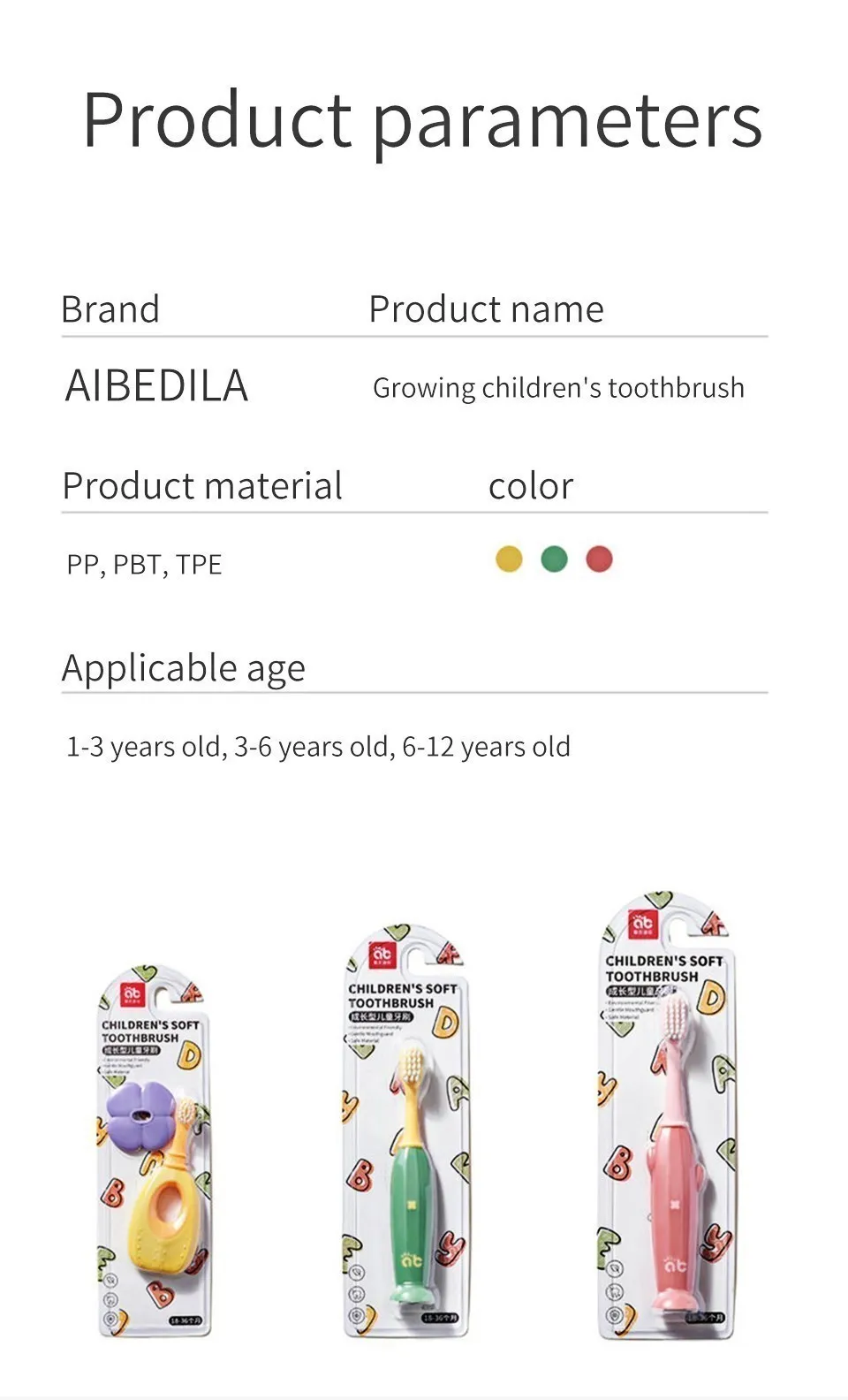 Applicable age 1-3 years old, 3-6 years old, 6-12 years old