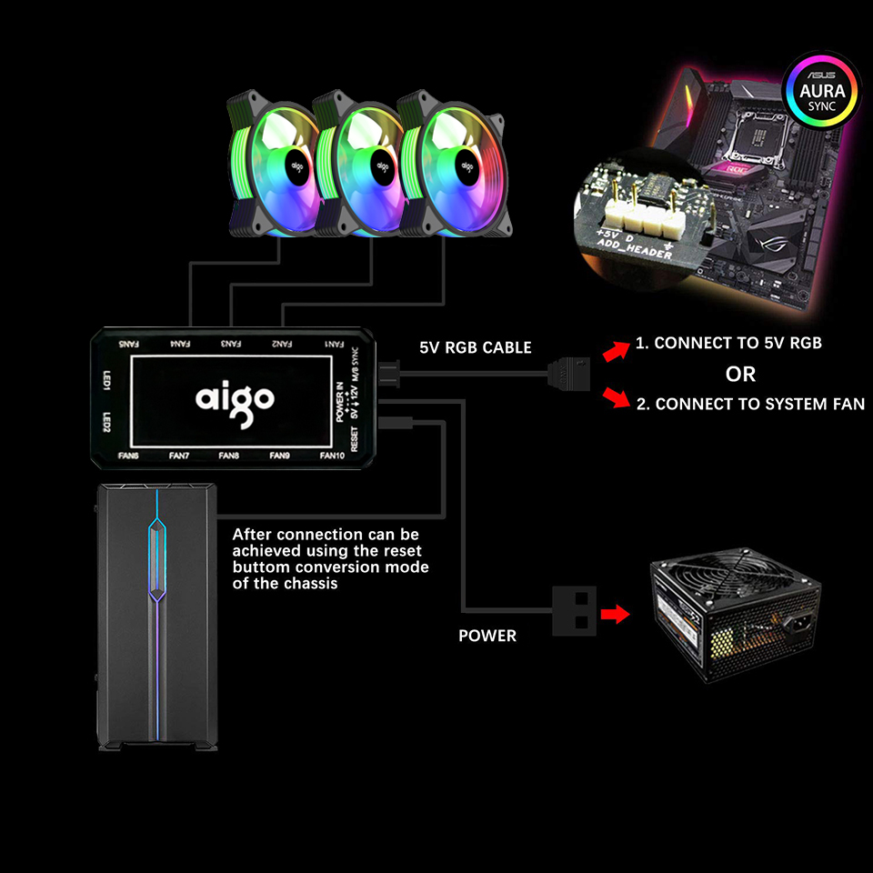 Напоминание: вентилятор и контроллер этого продукта совместимы и поддерживают только Охлаждающие вентиляторы серии AR марки AIGO, но нет гарантии, что они могут быть совместимы с продуктами других марок.