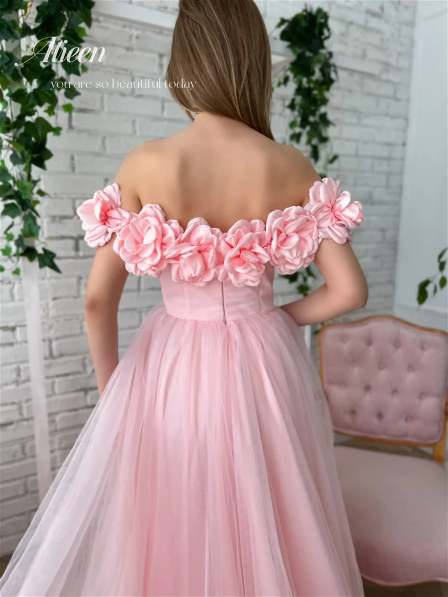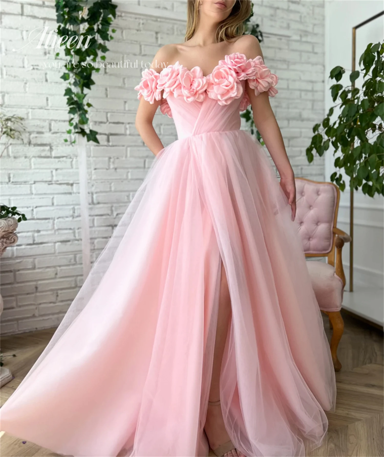 Aileen розовое Тюлевое длинное платье с объемными цветами, выпускные платья с открытыми плечами, аппликация, а-силуэт, вечерние платья, официальное платье для вечеринки 2023