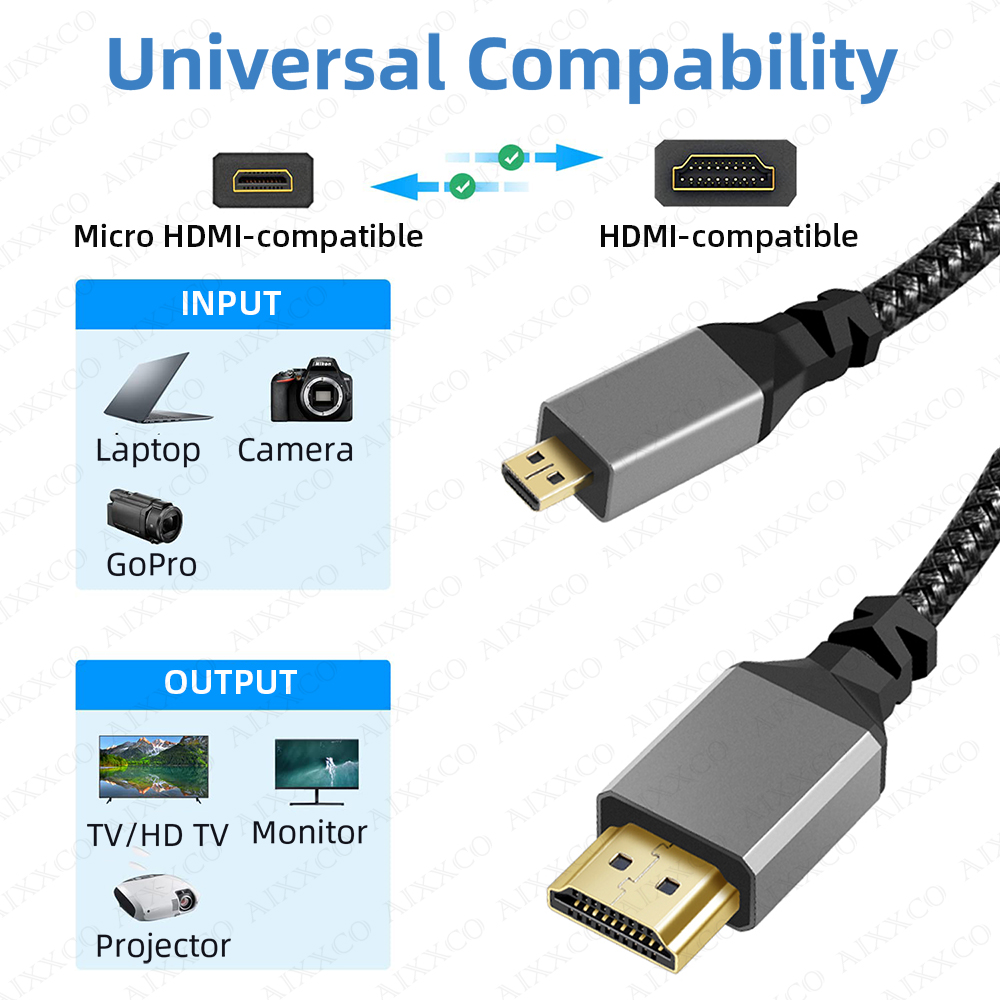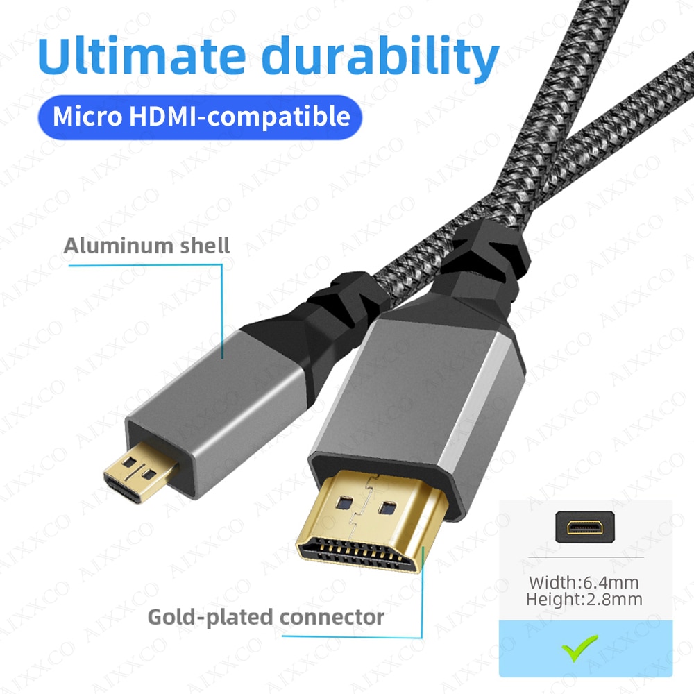 AIXXCO 1 м 1,5 м 2 м 3 Micro HDMI-совместимый 4K/60 Гц 3D к HDMI-совместимый кабель штекер-штекер для GoPro Sony