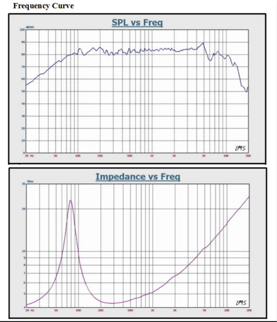 Полярность: Когда положительный ток D.C применяется к клемме звуковой катушки, отмеченной +, диафрагма должна двигаться вперед.