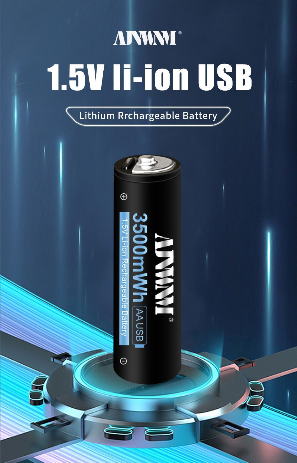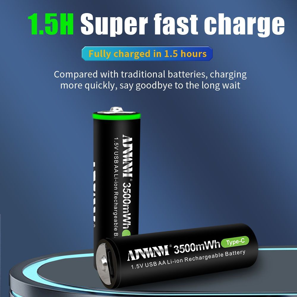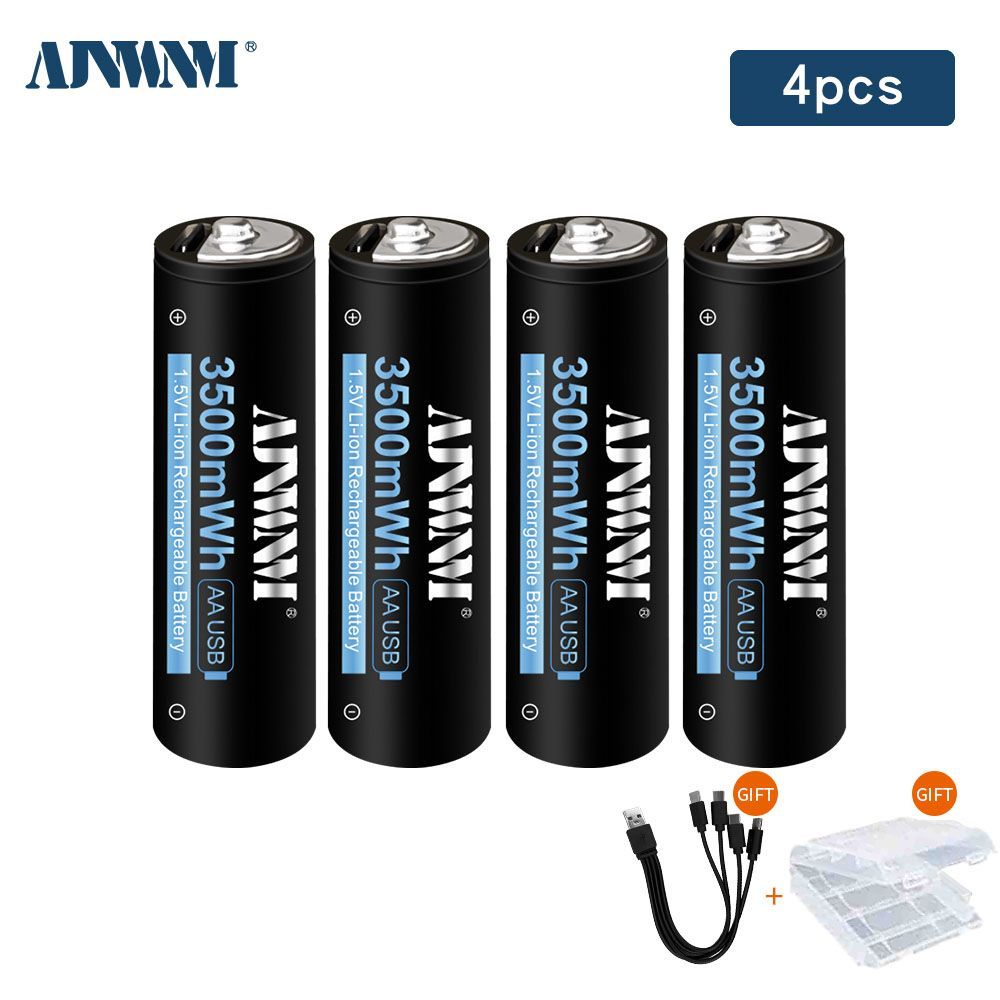 AJNWNM Аккумуляторная батарейка AA, 1,5 В, 3500 мАч, 4 шт