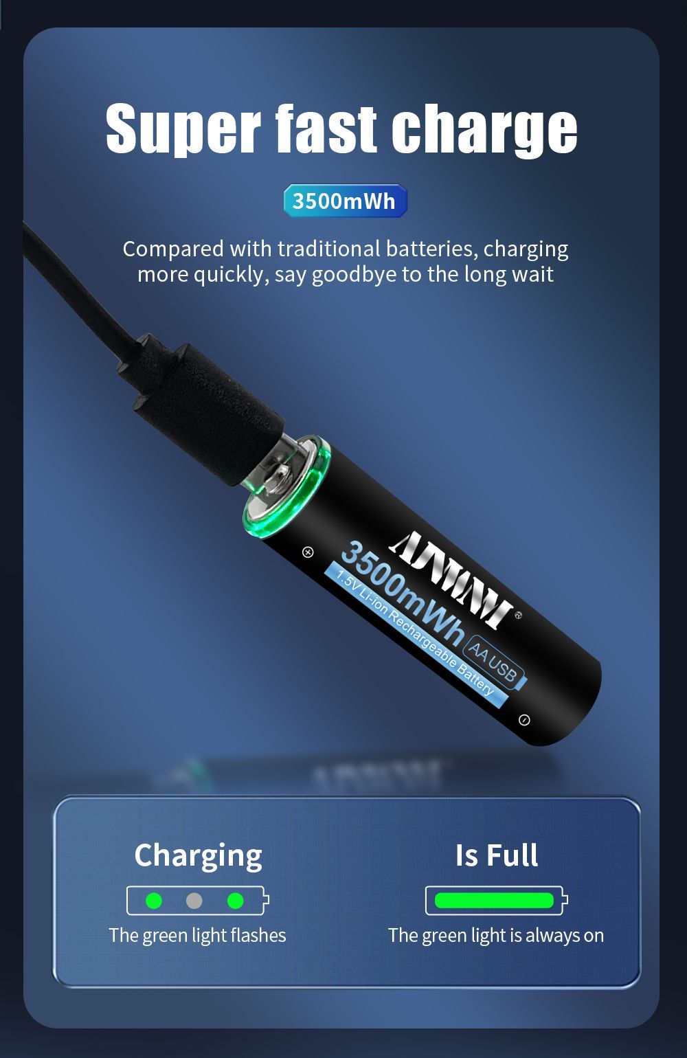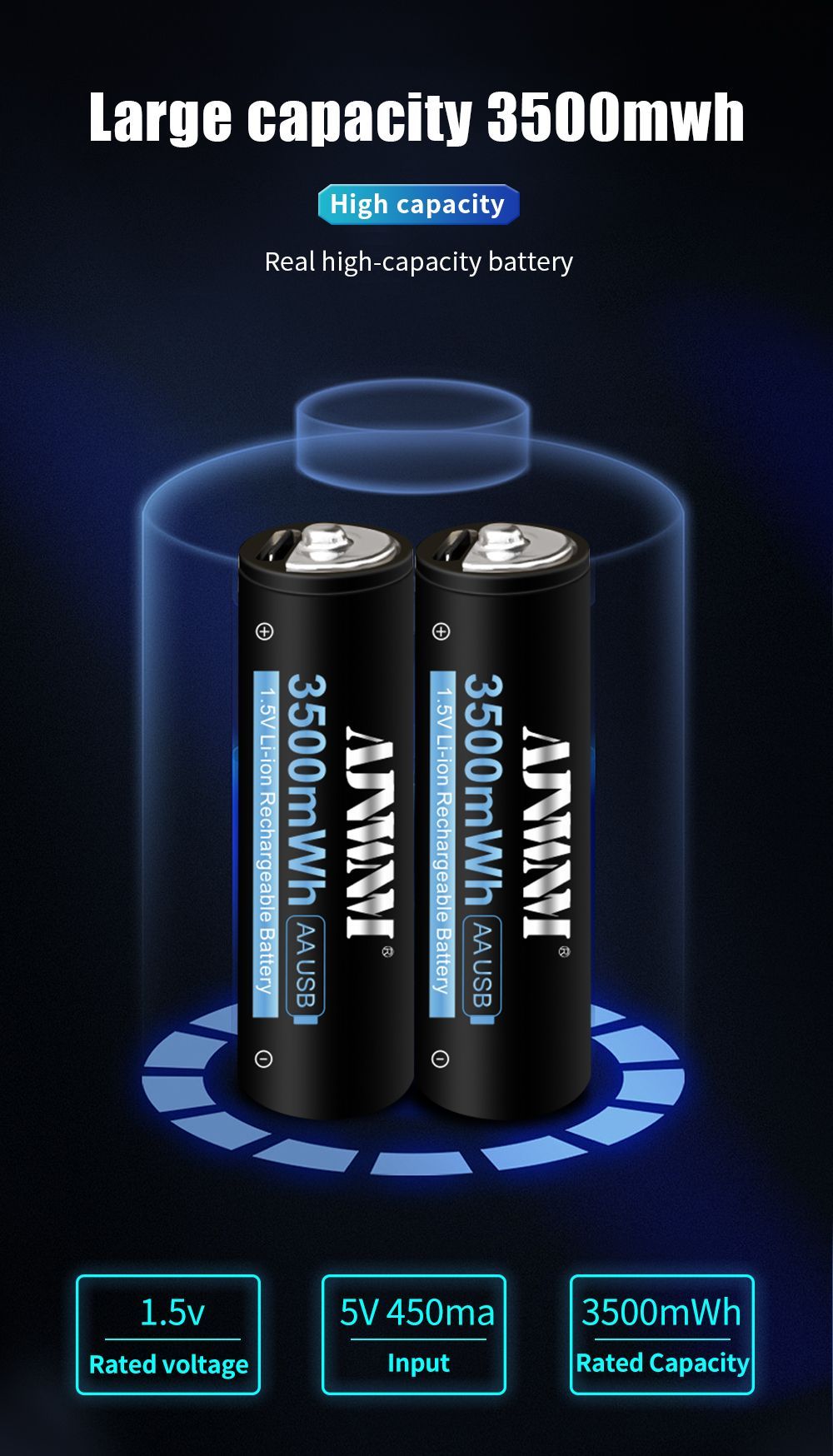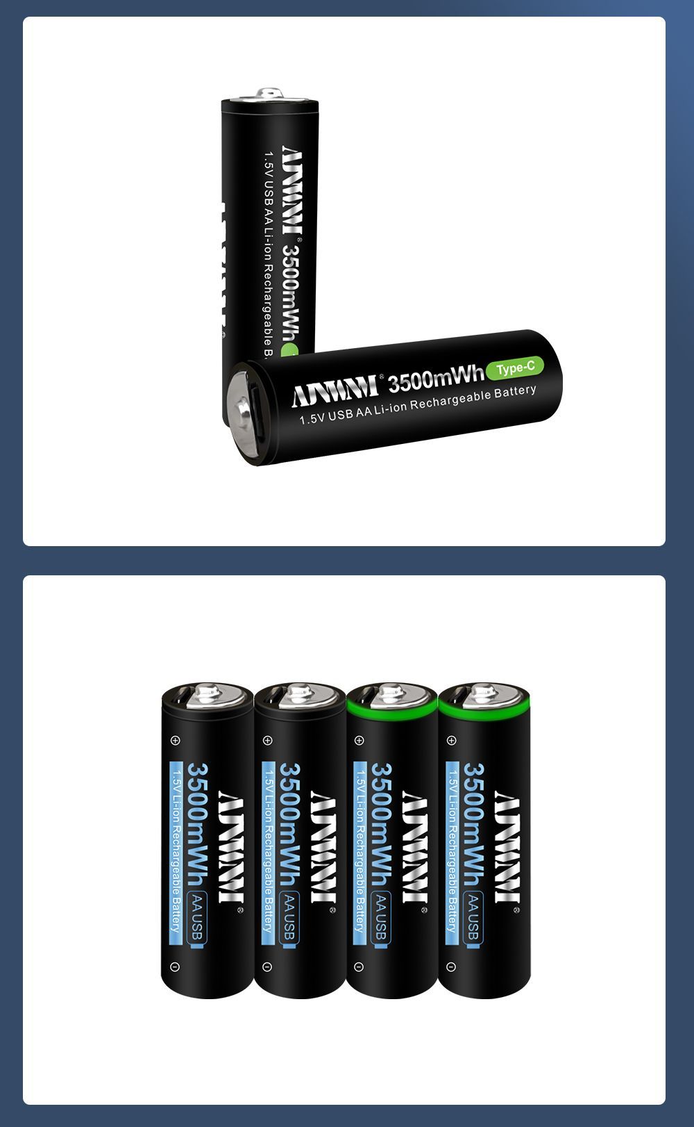 AJNWNM Аккумуляторная батарейка AA, 1,5 В, 3500 мАч, 4 шт