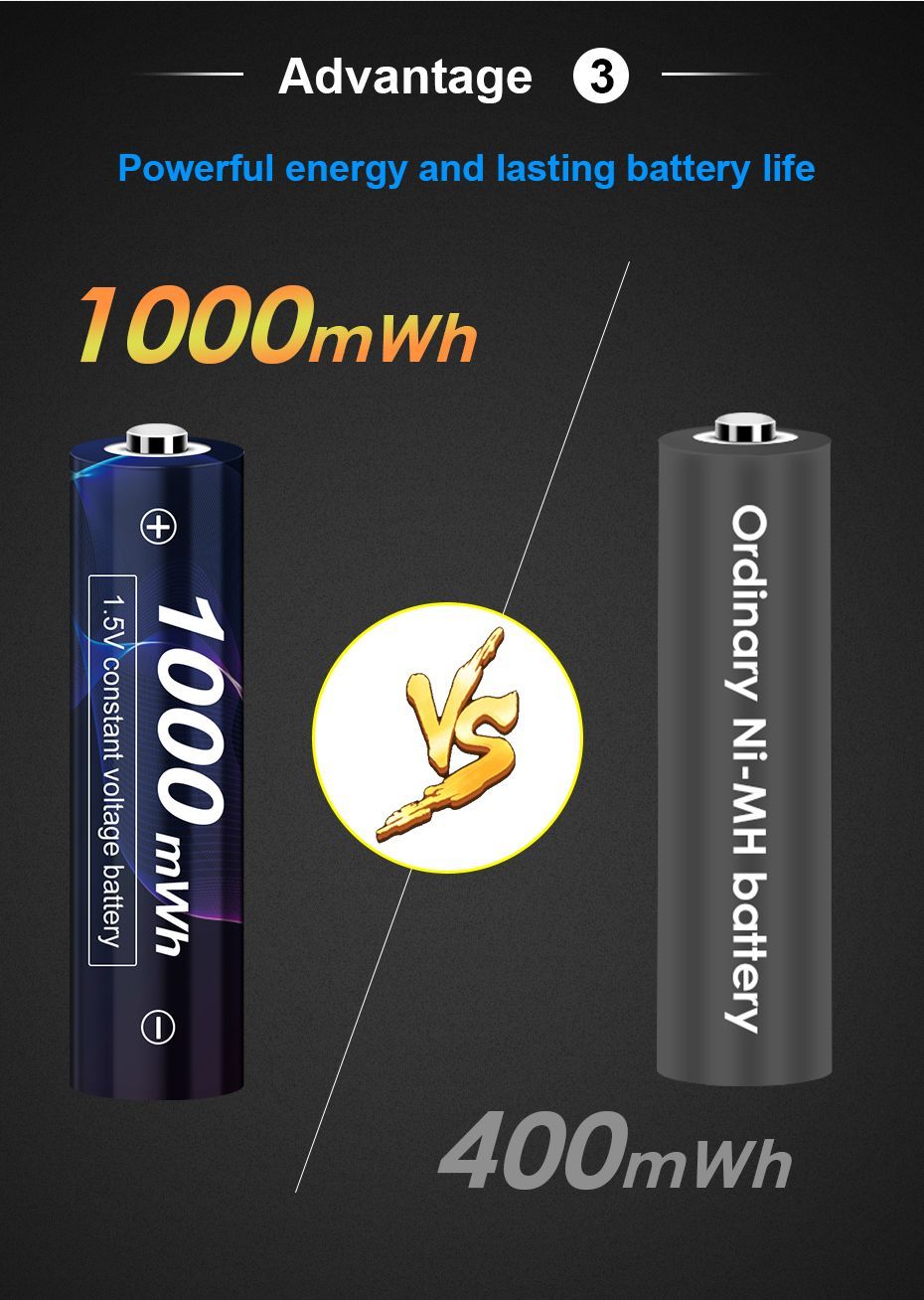 Стабильное постоянное напряжение 1,5 В, выше, чем у никель-металлогидридной батареи 1,2 В.
