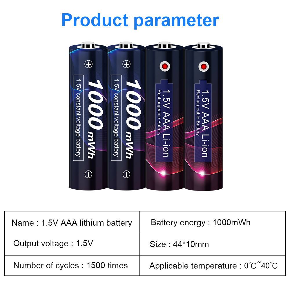 AJNWNM Аккумуляторная батарейка AAA, 1,5 В, 1000 мАч, 4 шт