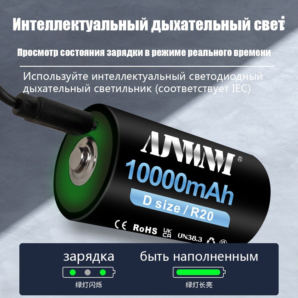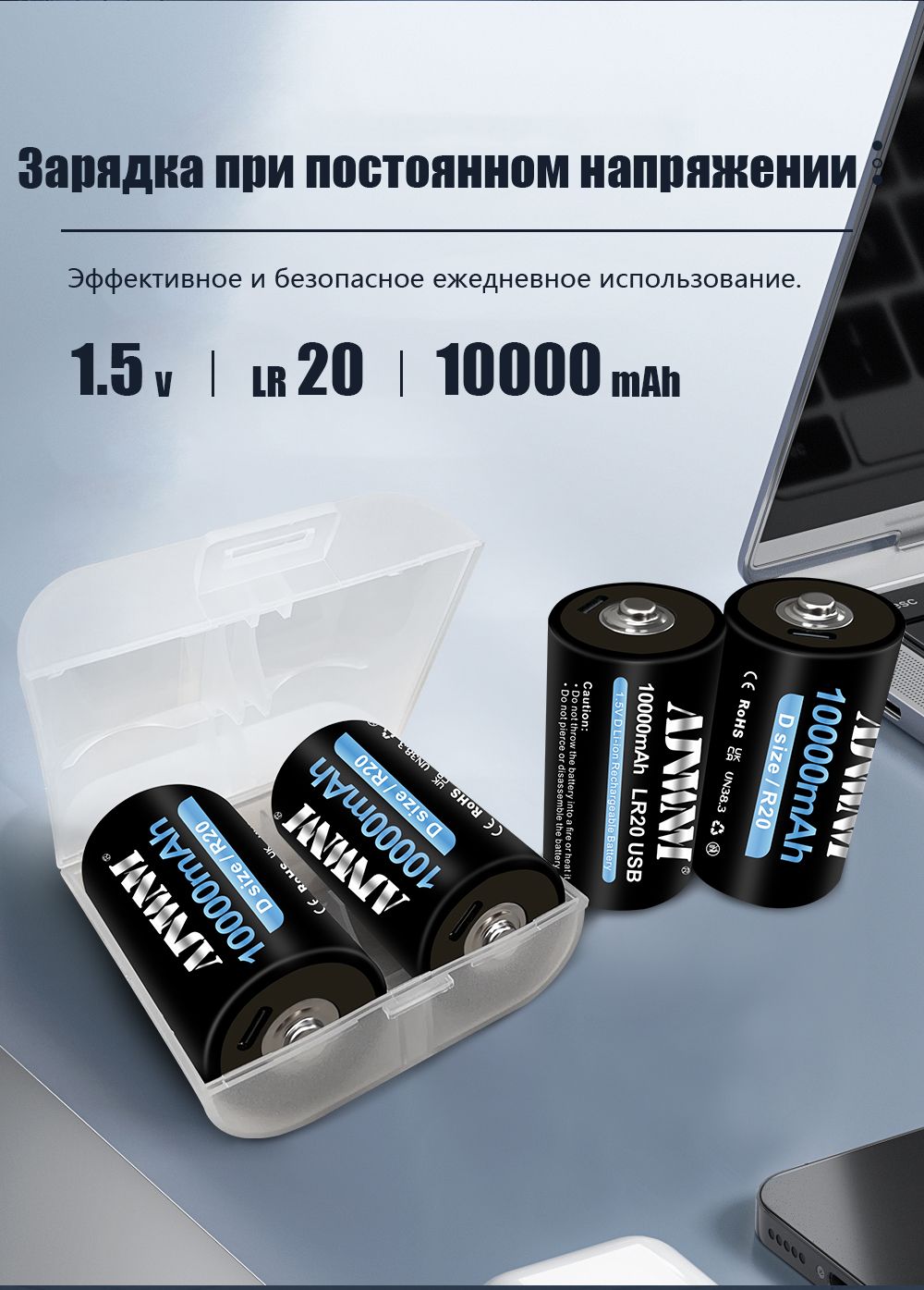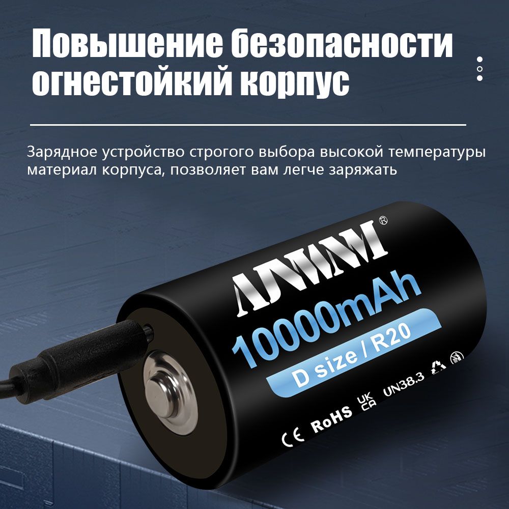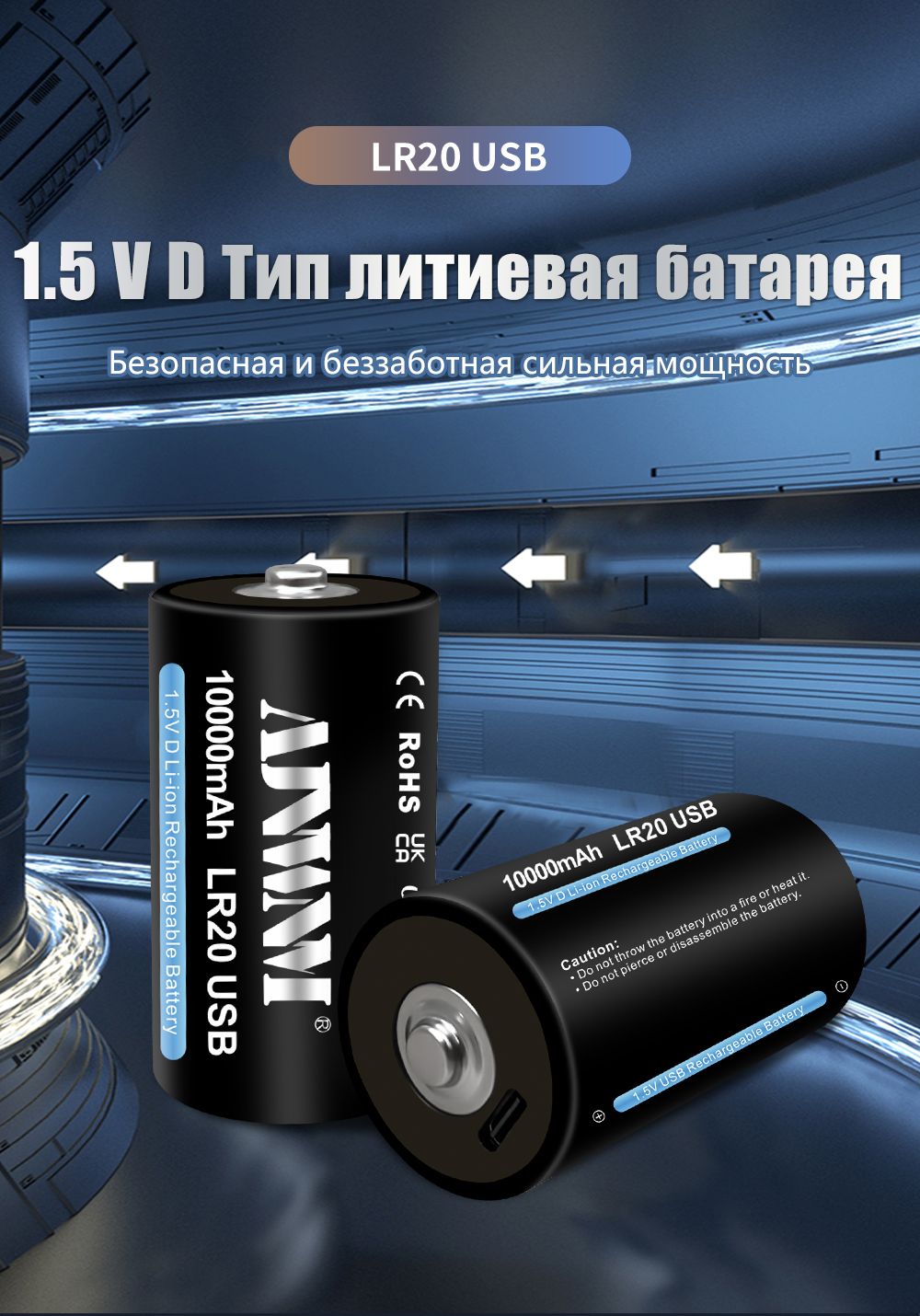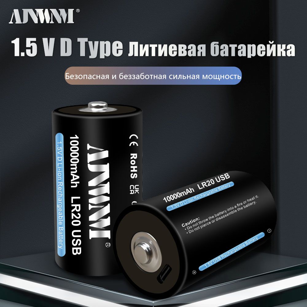 AJNWNM Аккумуляторная батарейка D, 1,5 В, 10000 мАч, 4 шт