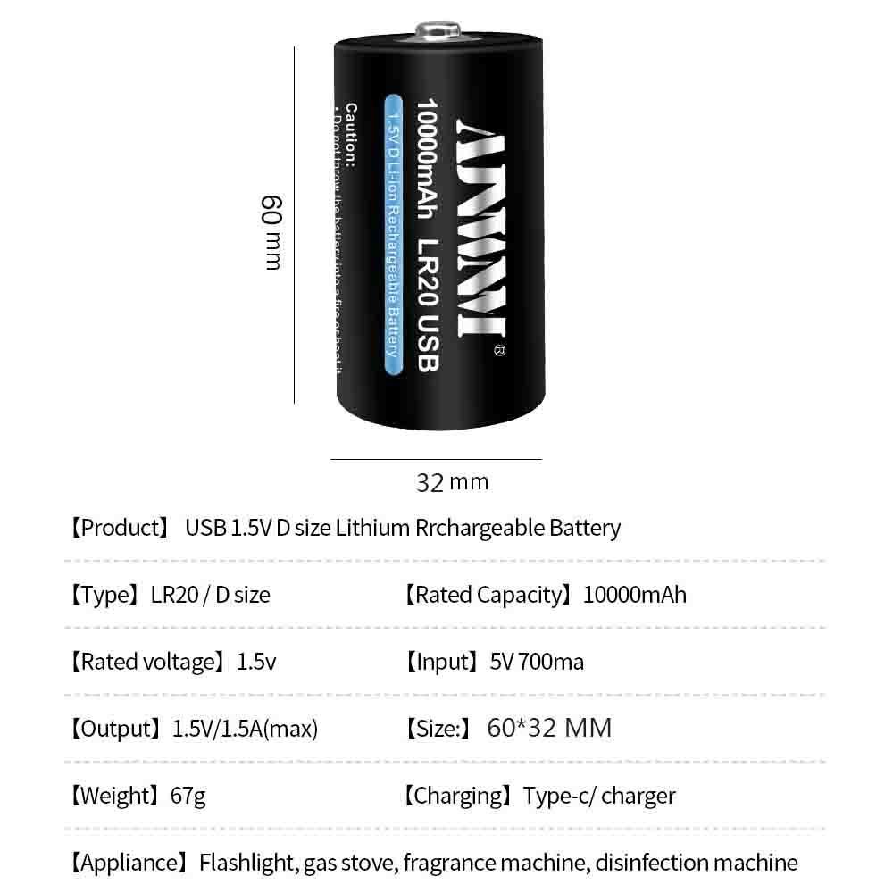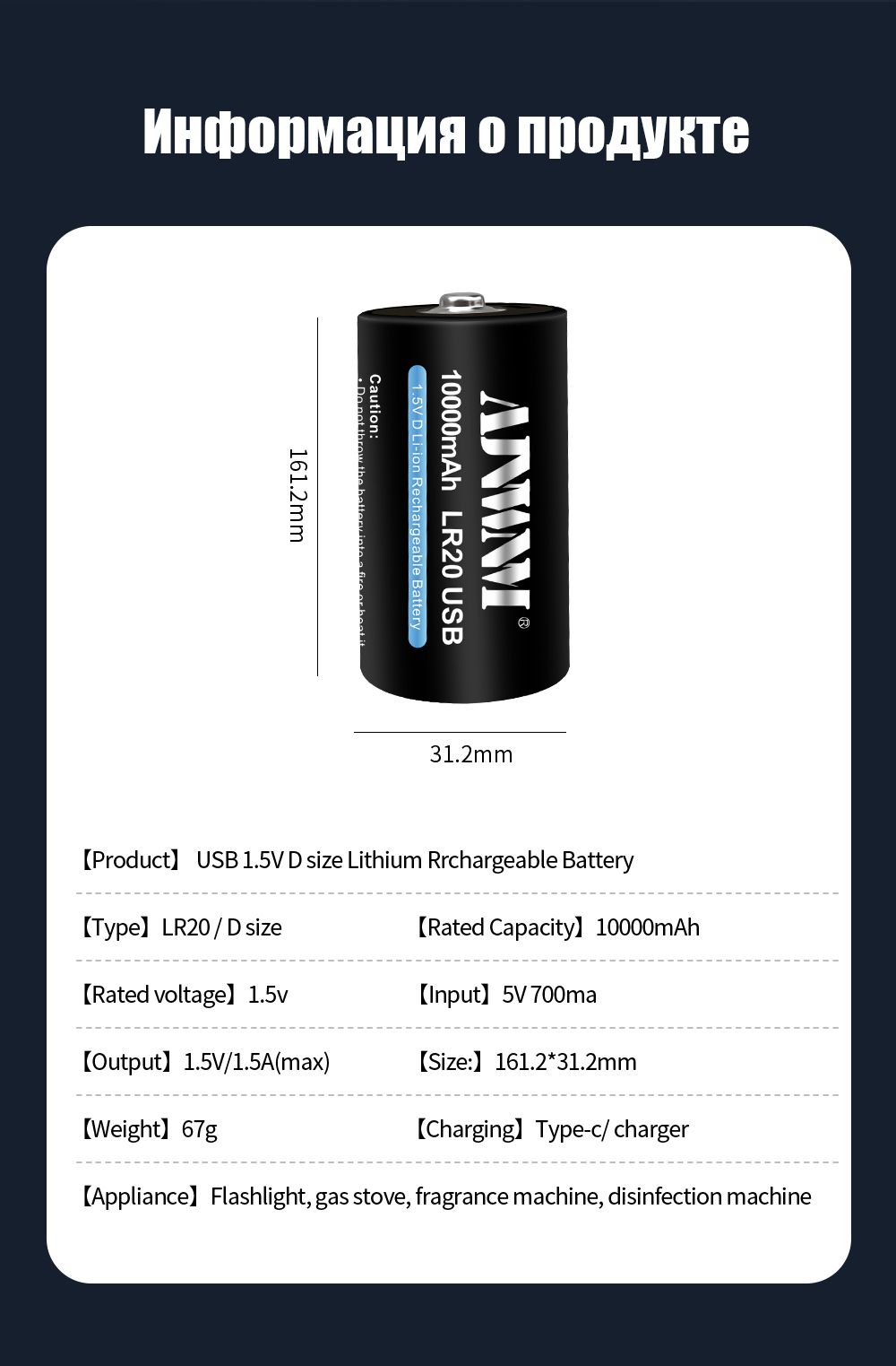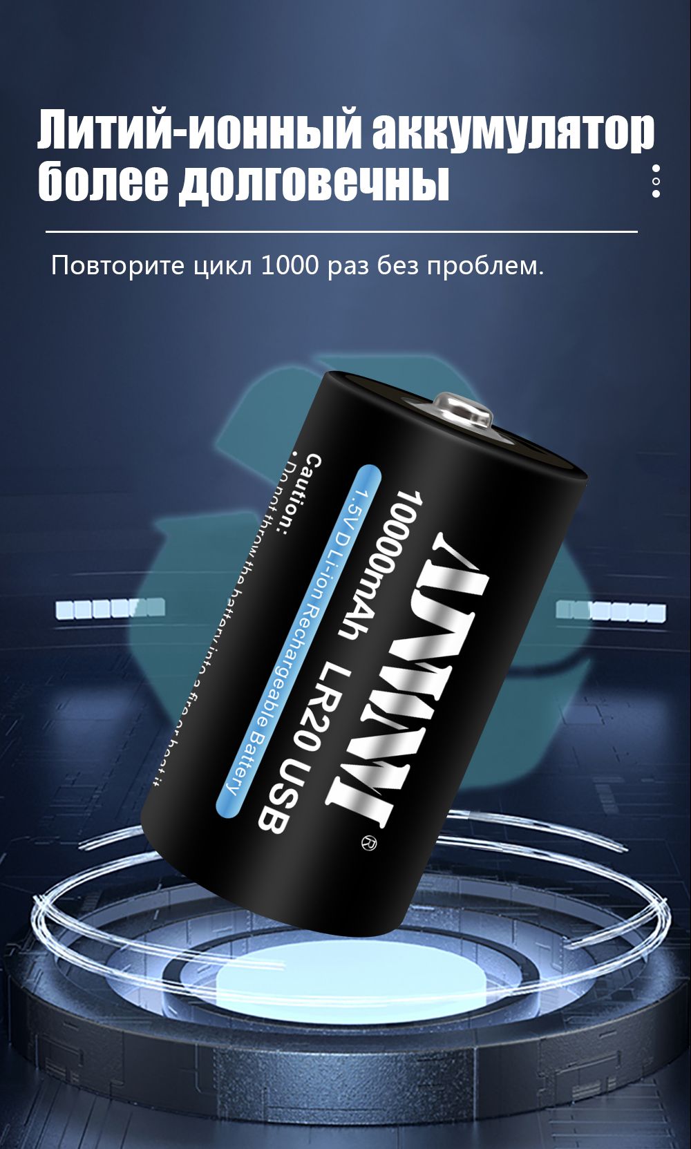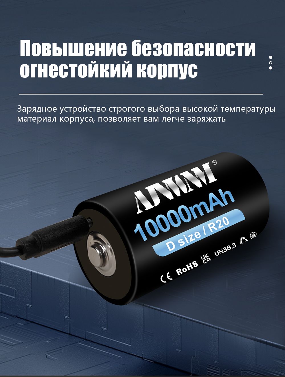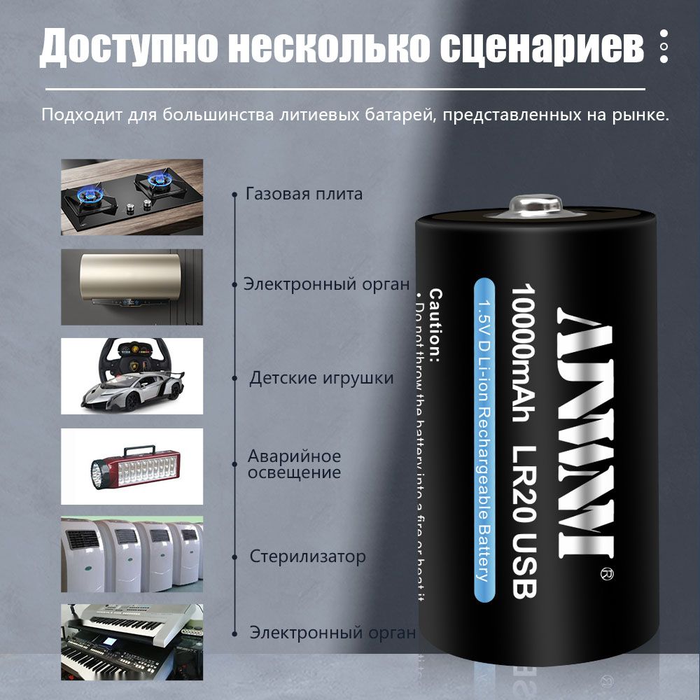 AJNWNM Аккумуляторная батарейка D, 1,5 В, 10000 мАч, 4 шт