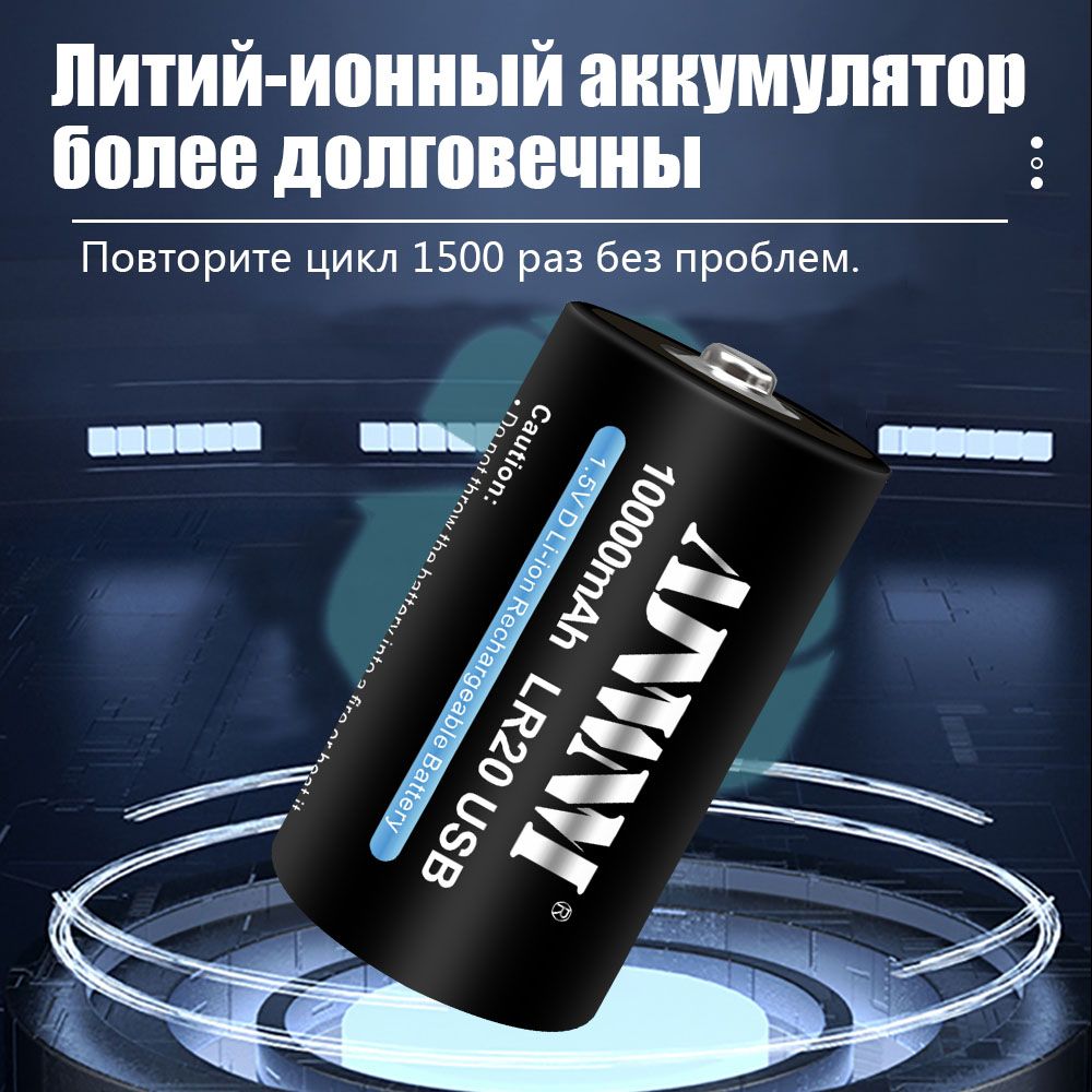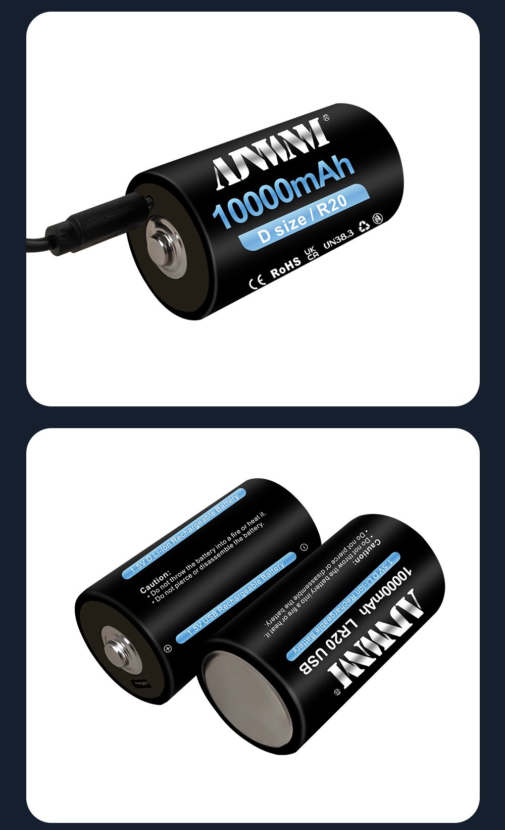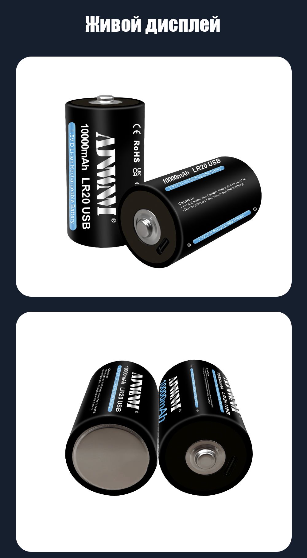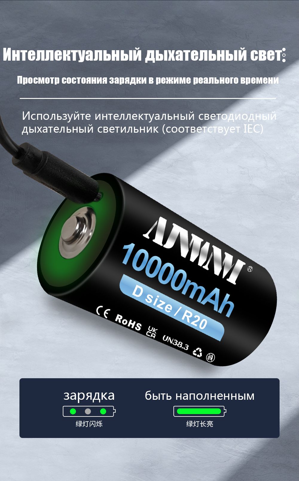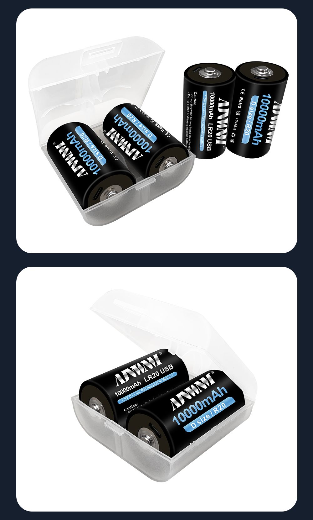 AJNWNM Аккумуляторная батарейка D, 1,5 В, 10000 мАч, 4 шт