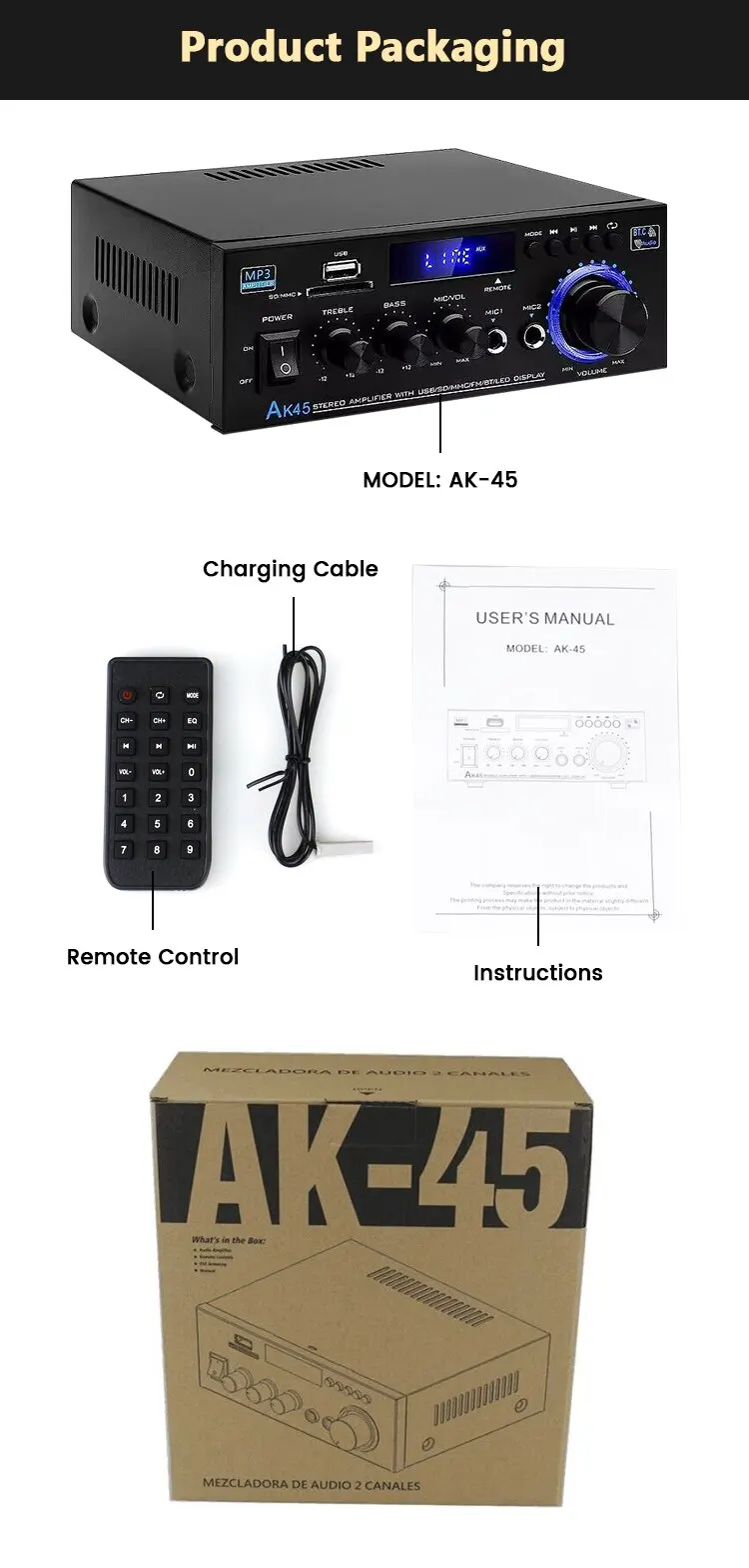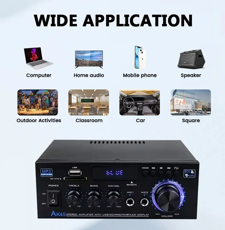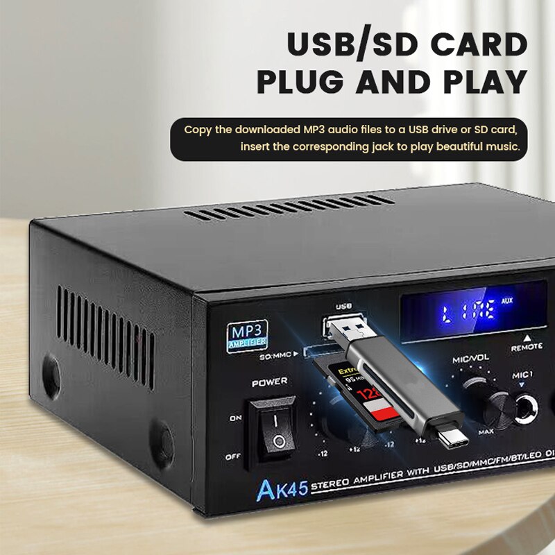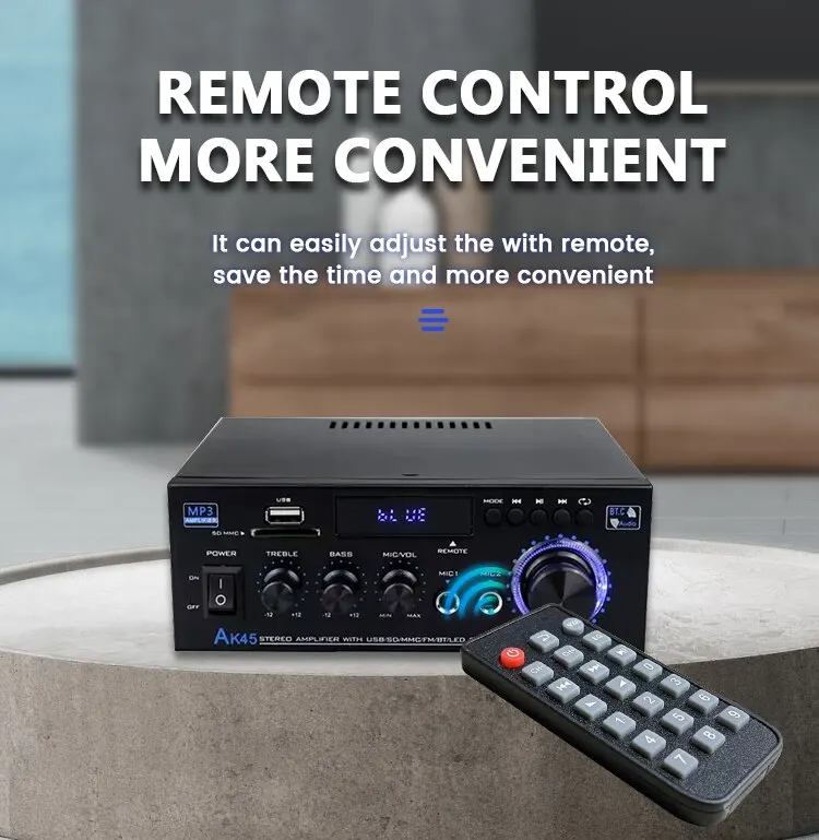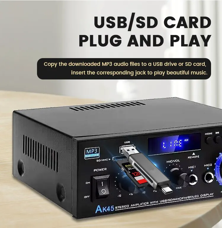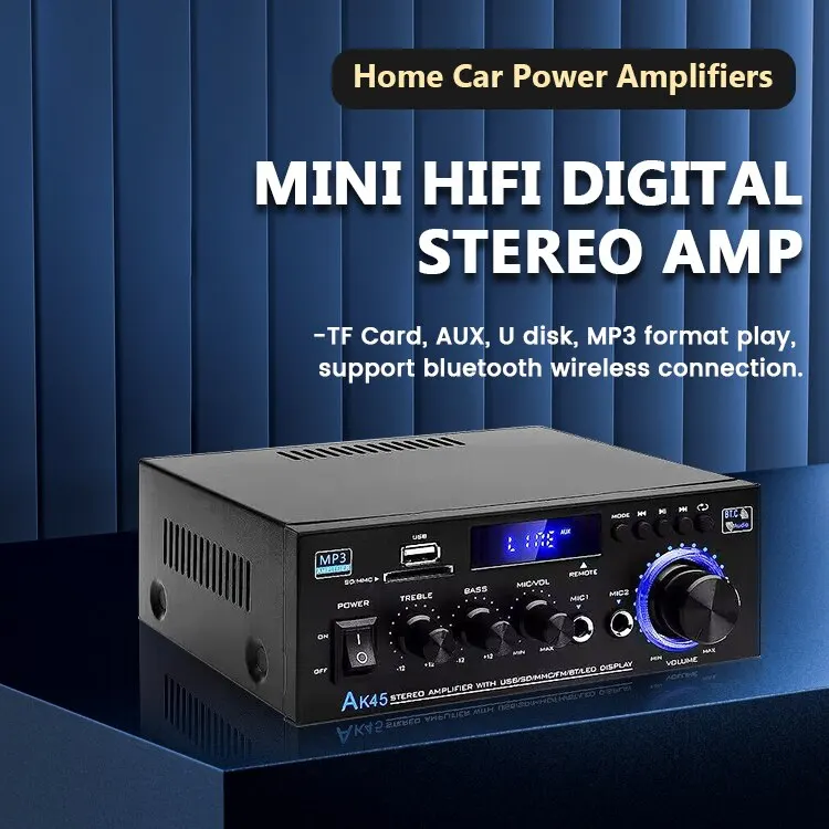 AK-45 HiFi стерео аудио усилитель FM USB MP3-канал 2,0 Звуковая мощность пульт дистанционного управления Поддержка 220 В для домашних автомобильных динамиков 40 Вт * 2