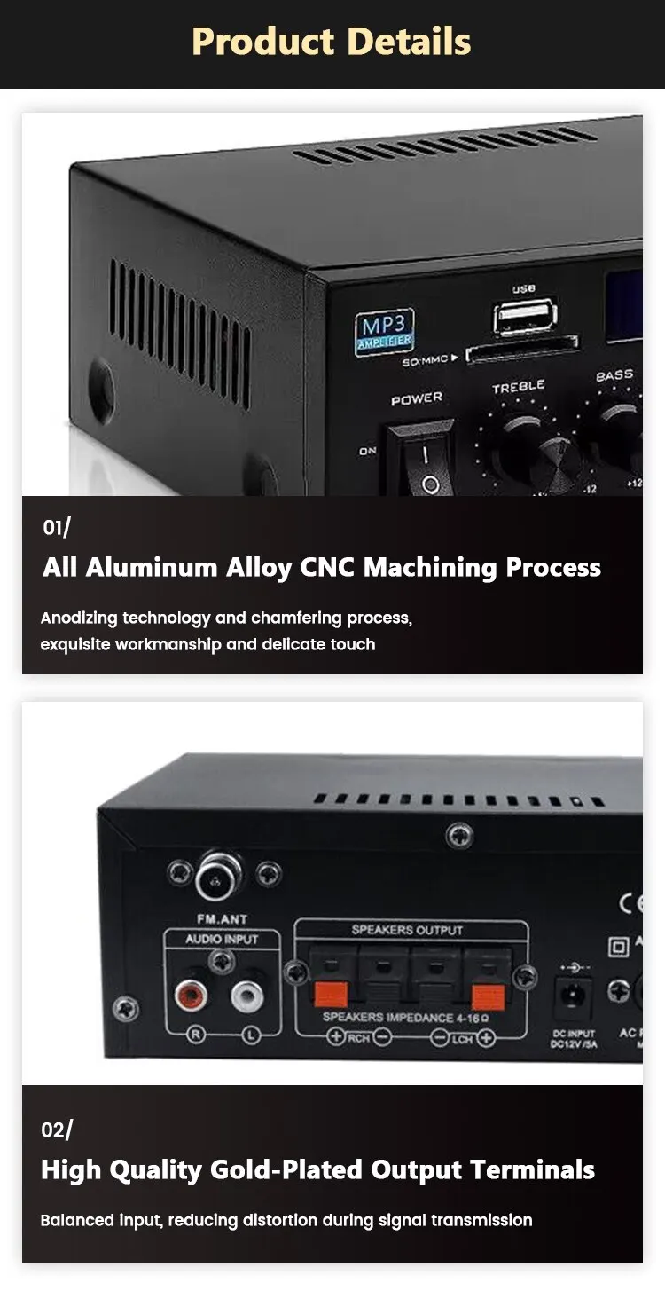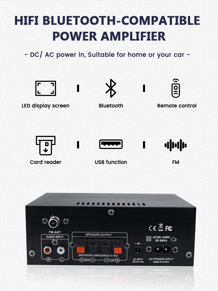 • Совместимость дома и автомобиля :Этот усилитель подходит для использования как дома, так и в автомобиле, что делает его универсальным вариантом для всех ваших потребностей в звуке.