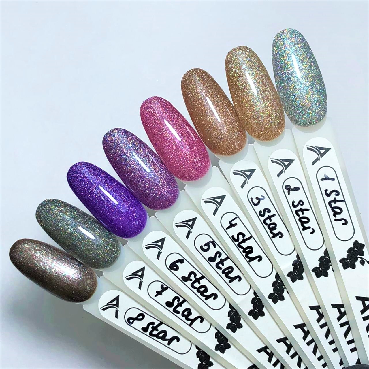 Akinami/Акинами блестящий гель-лак шеллак для маникюра и педикюра, гель лак для ногтей с голографическим эффектом Star Glow 07, 9 мл