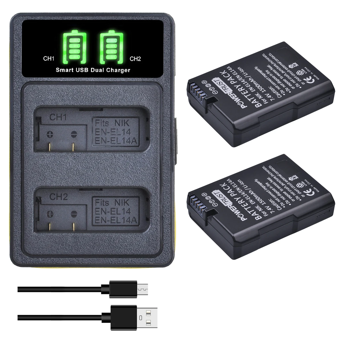 PowerTrust 2 шт. В упаковке 1500 мАч EN-EL14 Аккумулятор ENEL14 и зарядное устройство с двумя USB-дисплеями для Nikon P7800 P7100 D3400 D5500 D5300 D5200 D3200 D3300 D5100 D3100 DF