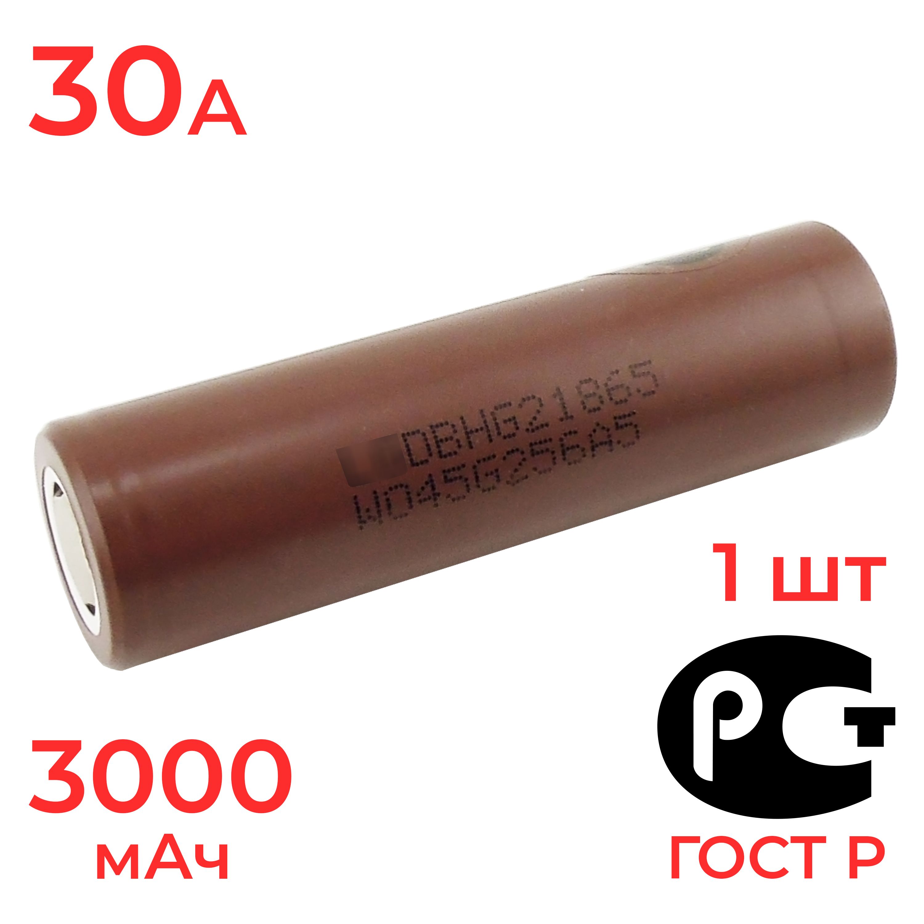 3000 мАч 30ААккумулятор литий - ионный, типоразмер 18650