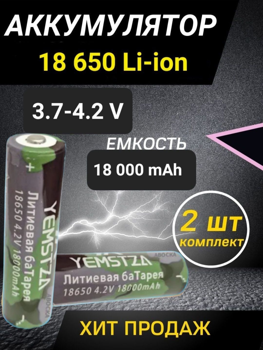 Аккумулятор 18650 универсальный 18 000 Mah / 2 штуки / Без коробки