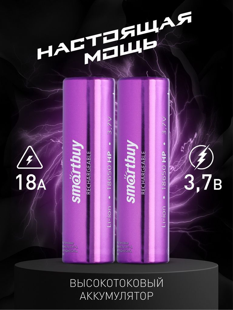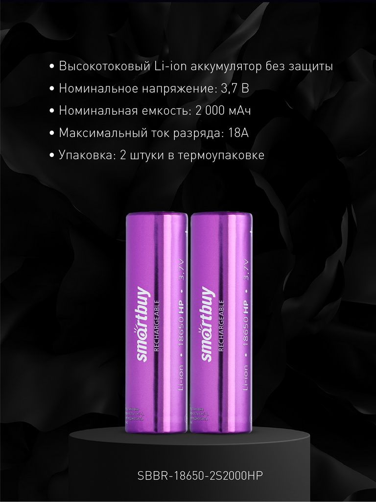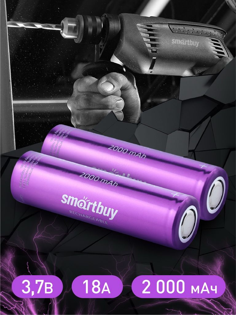 Аккумулятор 18650 высокотоковый Smartbuy 2000 mAh, 2шт