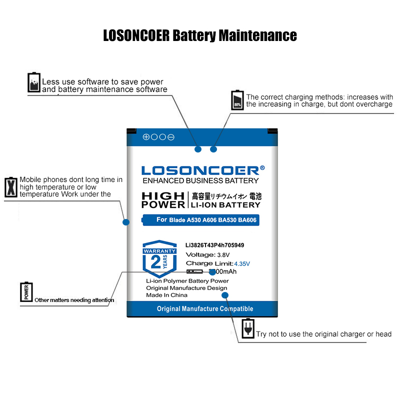 Профессиональное тестирование ВсеLosoncoerАккумулятор прошел строгий контроль качества перед отправкой: 100% новый и O цикл, без эффекта памяти, 72 часа теста на старение, Статика при высокой температуре и активация внутреннего химического элемента ячейки, обеспечить стабильность зарядки и разрядки. Таким образом, вам не нужно немедленно активировать, заряжать или использовать его.