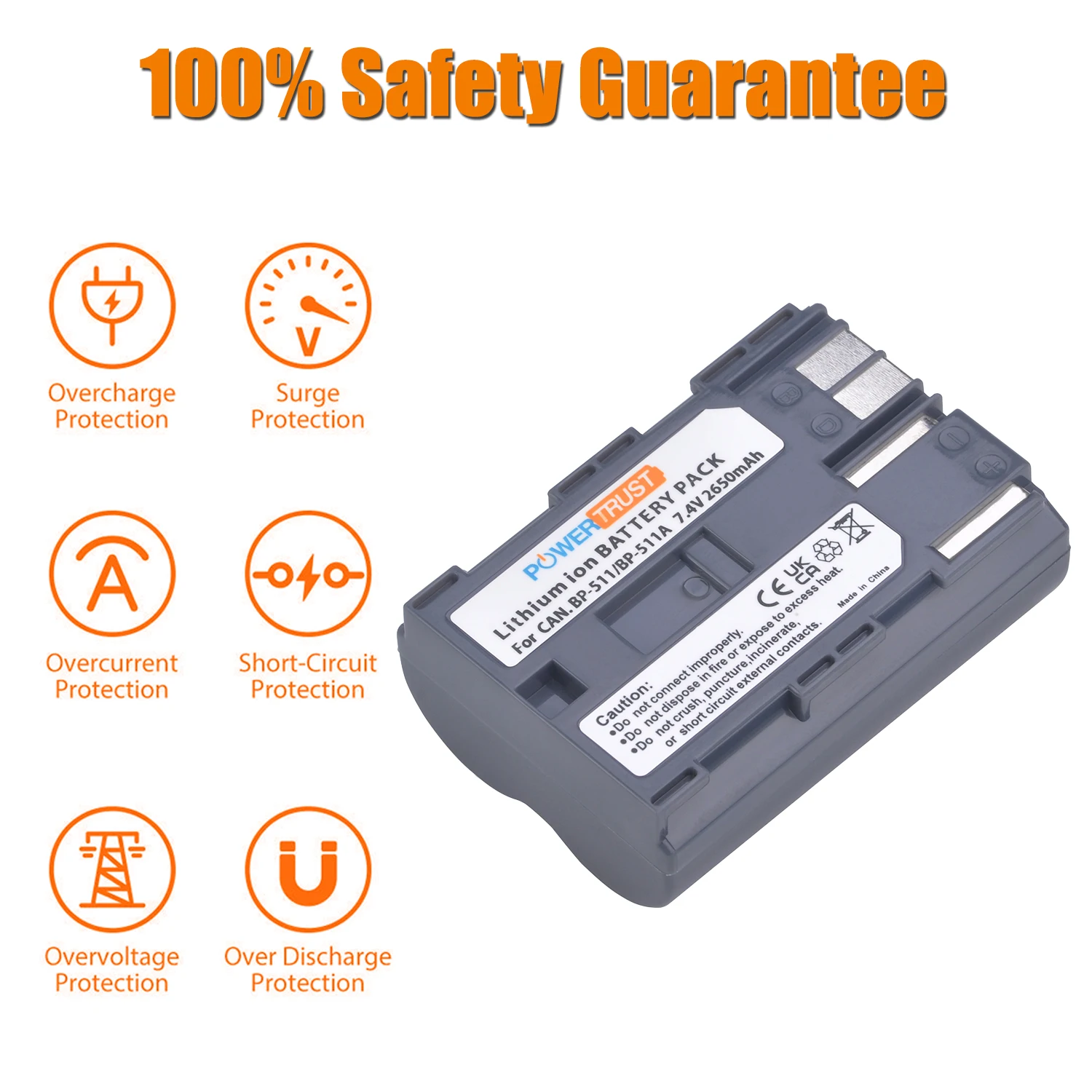 PowerTrust 2шт 2650mAh BP-511 BP 511 BP511 BP511A батарея + LCD USB двойное зарядное устройство для Canon EOS 40D 300D 5D 20D 30D 50D