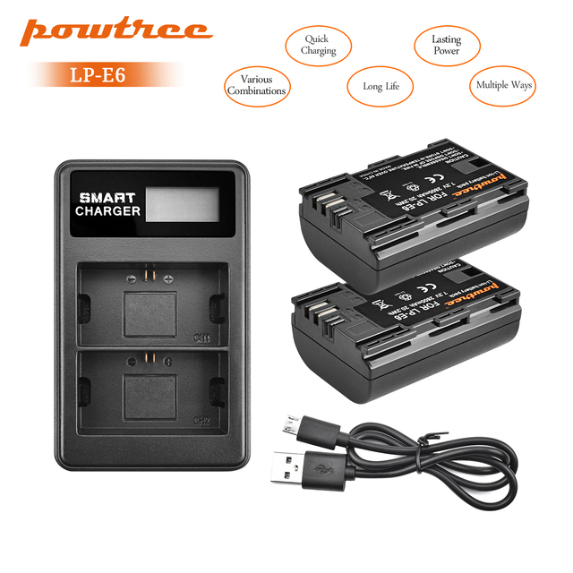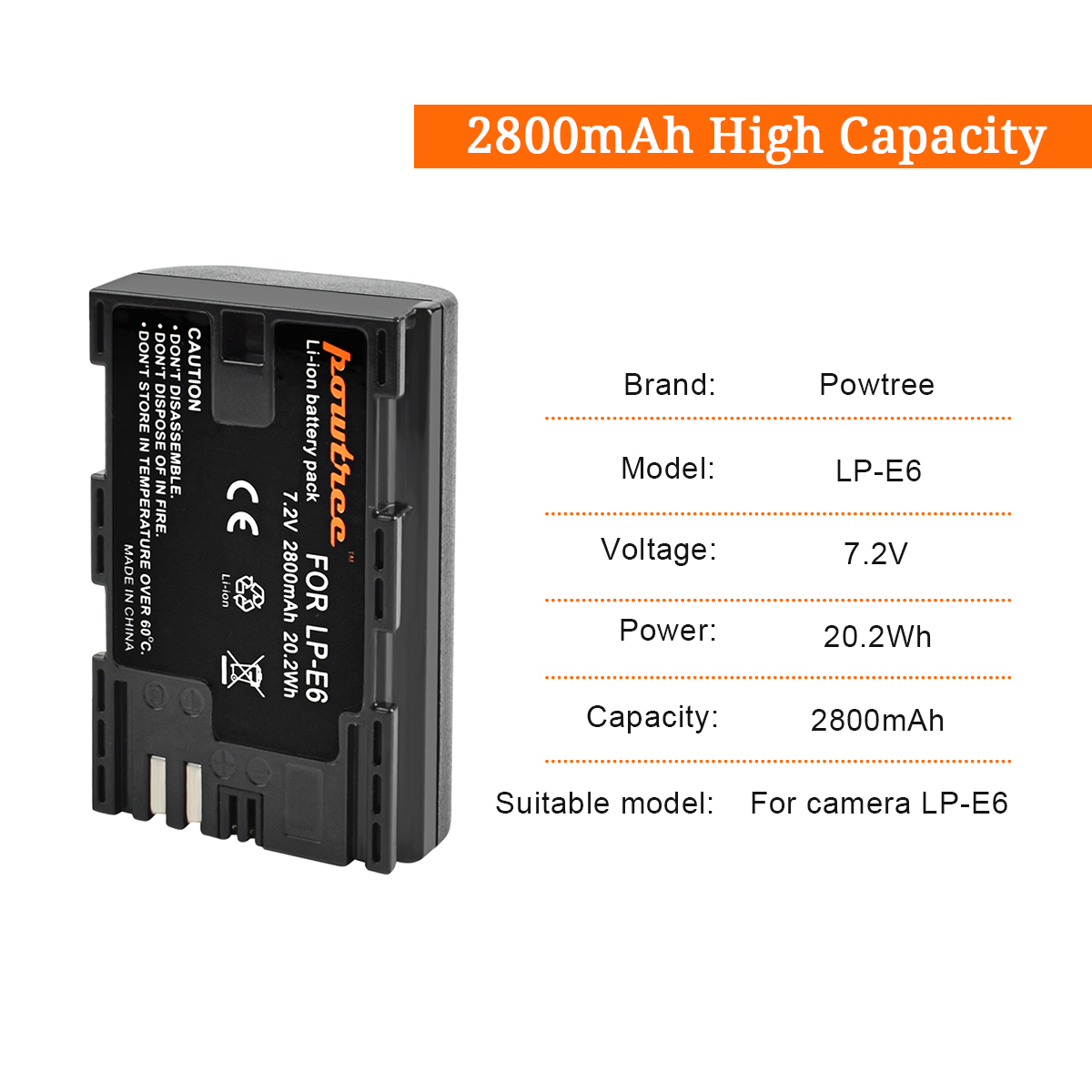 Аккумулятор 2800 мАч LP E6 LPE6 LP-E6 E6N + двойное зарядное устройство для Canon EOS 5DS R 5D Mark II 5D Mark III 6D 7D 70D 80D Аккумулятор для камеры