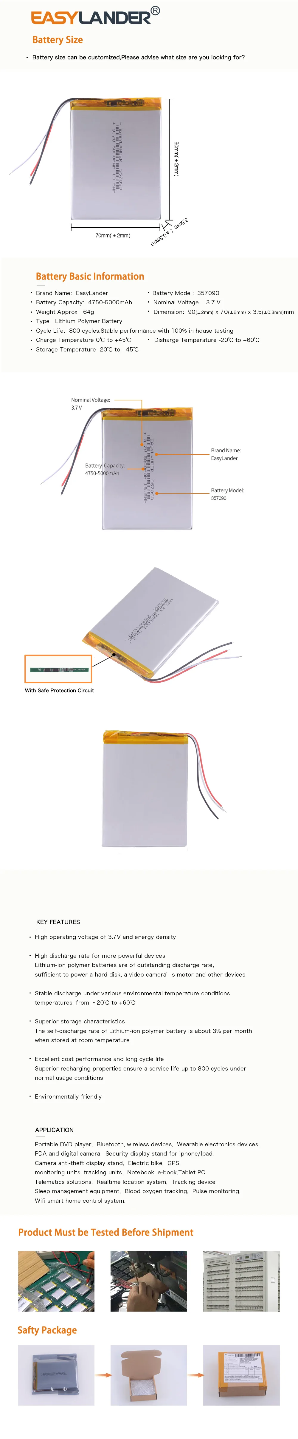 Аккумулятор 357090 мАч 3 линии для планшета Prestigio 5000 4G Prestigio Wize 3407 4G Prestigio pmp880td