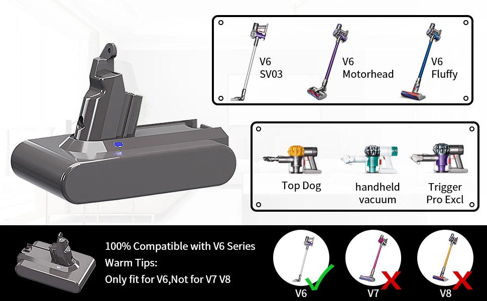 Эта батарея для ручного пылесоса DYSON V6 совместима со следующими моделями: (Используйте «Ctrl + F»)