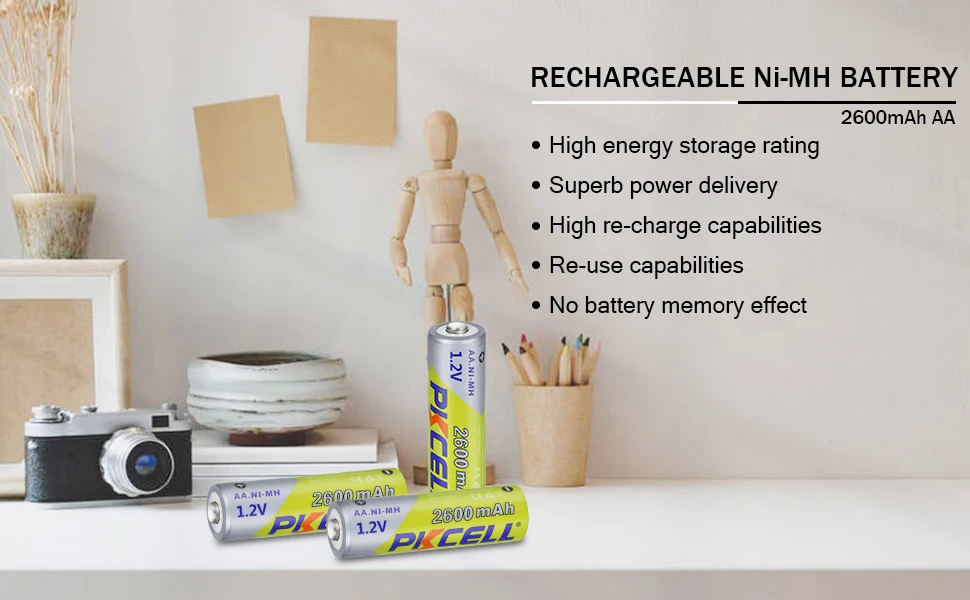 Аккумулятор 8PC PKCELL NIMH AA 2600Ah 1.2V 2A Ni Mh Двойной зарядный аккумулятор и 2PC AA фонарик Игрушечный аккумулятор