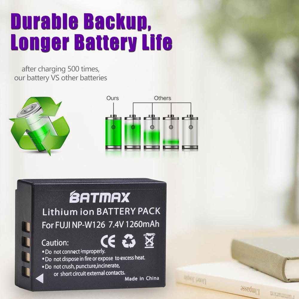 Аккумулятор Batmax 1260 мА · ч NP-W126 NP-W126S + новое светодиодный двойное зарядное устройство USB для Fujifilm X-T20 XPro1 HS30EXR X-H1 XH1