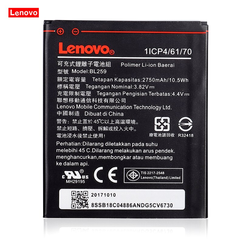 Аккумулятор BL259 для Lenovo Vibe K5 / K5 Plus/A6020, A6020A40, A6020A46, 2020, 100%, 3,82 в, 2750 мАч