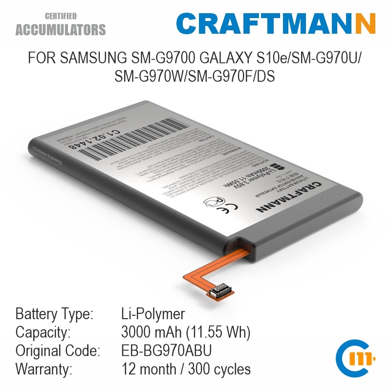 Аккумулятор Craftmann для SAMSUNG SM-G9700 GALAXY S10e/SM-G970U/SM-G970W/SM-G970F/DS (EB-BG970ABU)