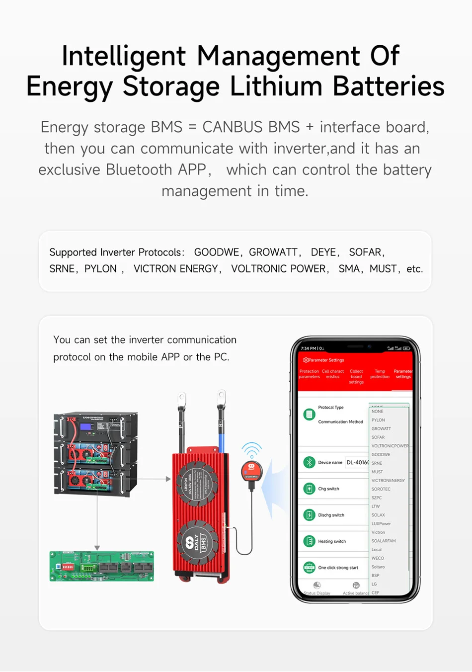 Аккумулятор DALY BMS SMART Lifepo4 CANBUS BMS 1A, активный балансир 4S 12 В, 8S, 24 В, 16S, 48 В, 200 А