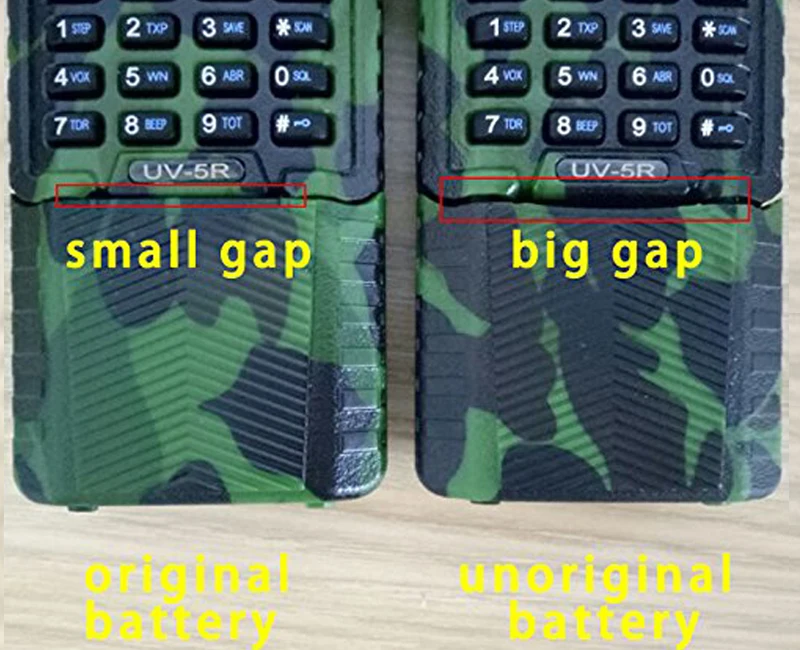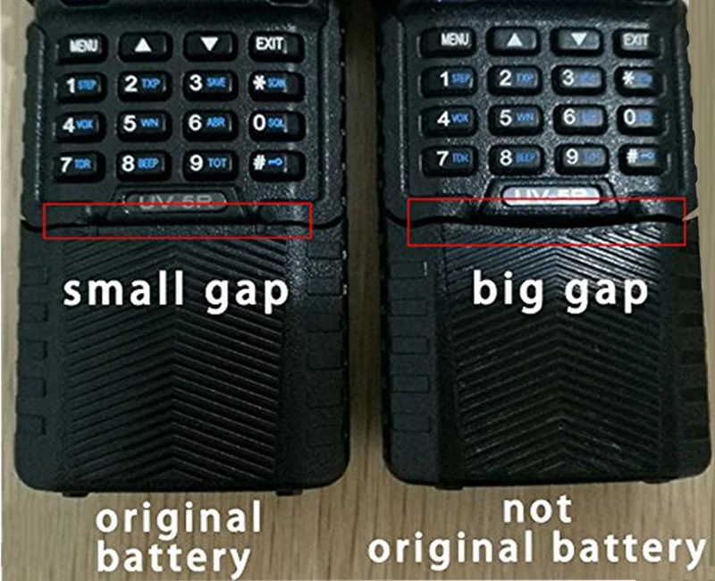 При использовании оригинального аккумулятора Baofeng UV-5R зазор между аккумулятором и корпусом рации очень мал. Если вы используете поддельный, разрыв такой большой!