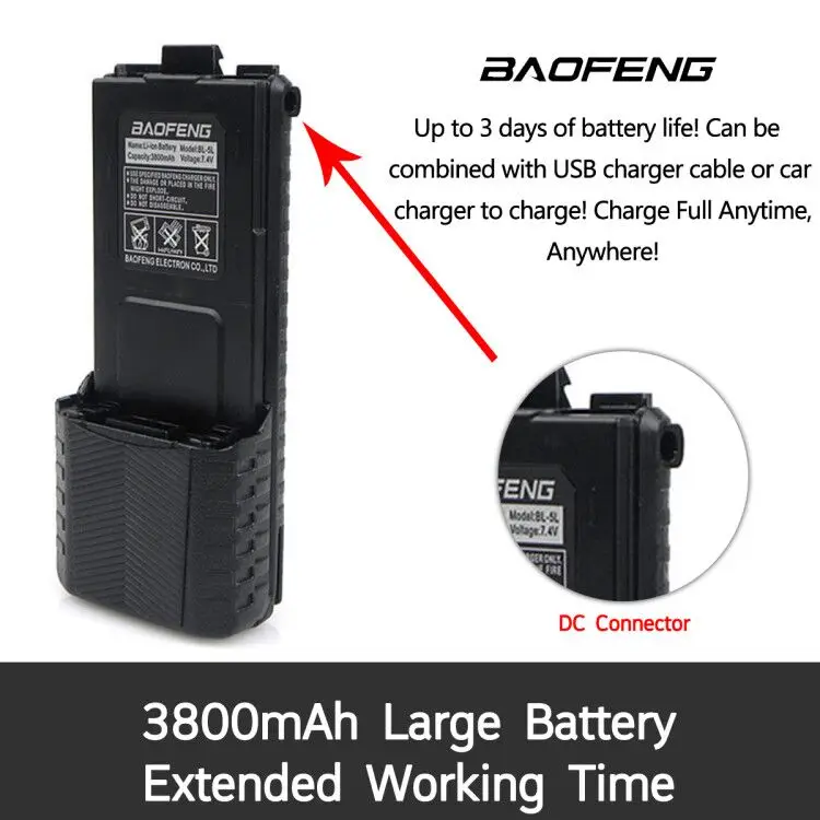 Двухдиапазонный радиоприемник Baofeng UV-5R характеристики батареи: