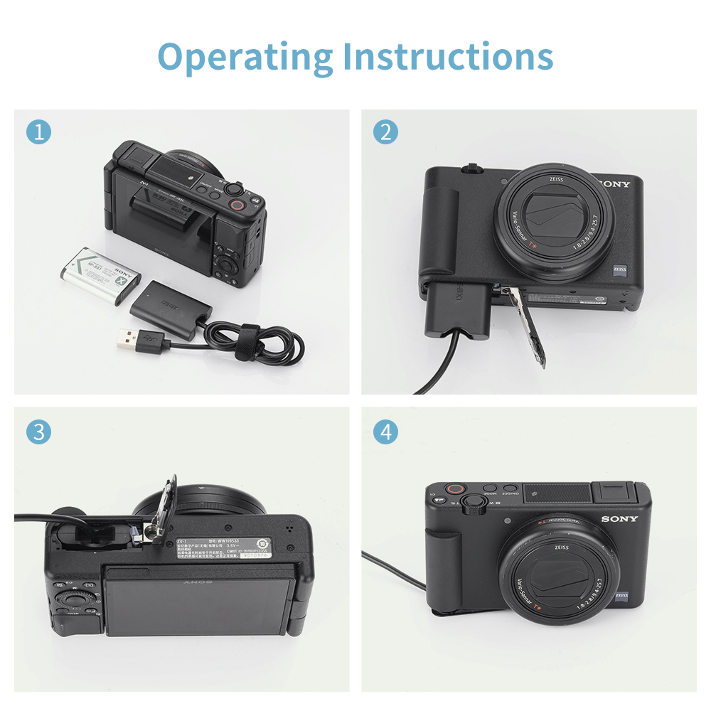 Камера Sony ZV1 не оставляет за собой отверстия для кабеля, из-за чего крышка установленной фиктивной батареи не может быть полностью закрыта, но ее можно использовать в обычном режиме.