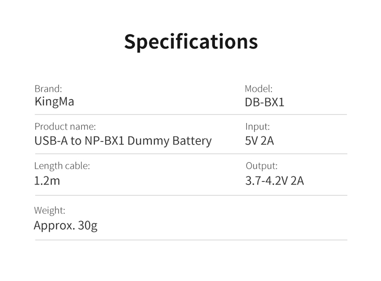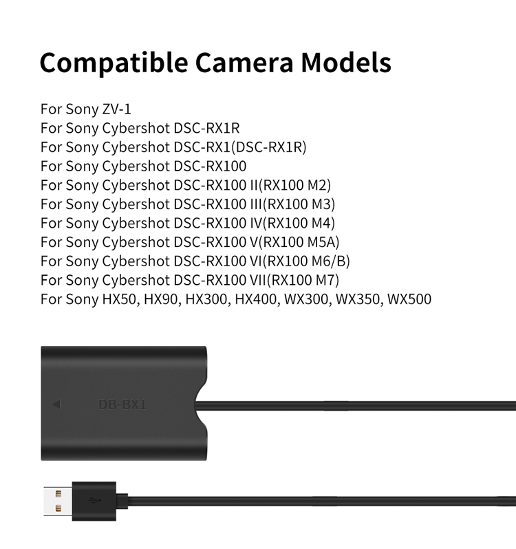KingMa NP-BX1 фиктивная батарея с адаптером питания USB-A, Переходник постоянного тока для Sony ZV-1 RX100 M7 M6 M5 M4 M3 M2 RX1R RX1 HX50 HX90 HX300 HX400 WX300 WX350 WX500 камера