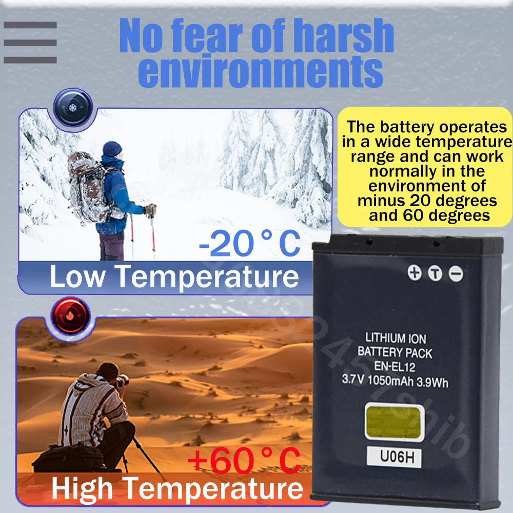 3,7 V 1050mAh EN-EL12 EN EL12 батарея для камеры Nikon CoolPix S610 S610c S620 S630 S710 S1000pj P300 P310 P330 S6200 S6300 S9400