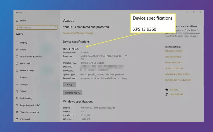 • Следующий самый простой: нажмите правой кнопкой мыши на Start > System > Settings (About) Screen > Device specifications.