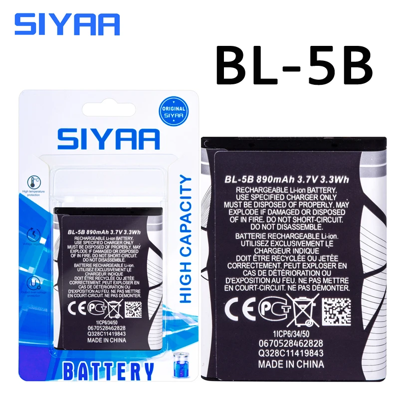 BL-5B For Nokia BL-5B BL5B BL 5B 5070 5140 5200 5300 5500 6020 6021 6060 6070 6080 890mAh