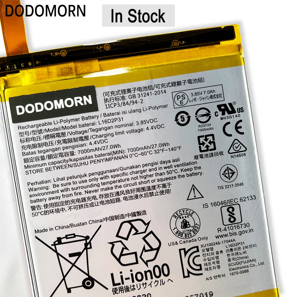 Аккумулятор DODOMORN L16D2P31 для планшета Lenovo Tab 4 10, 10, 10Plus, TB-X304L X504F, X504L, X504F, 1ICP3/84/94-2, 3,85 В, 27 Вт/ч
