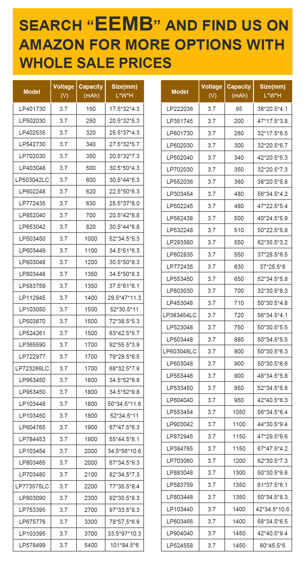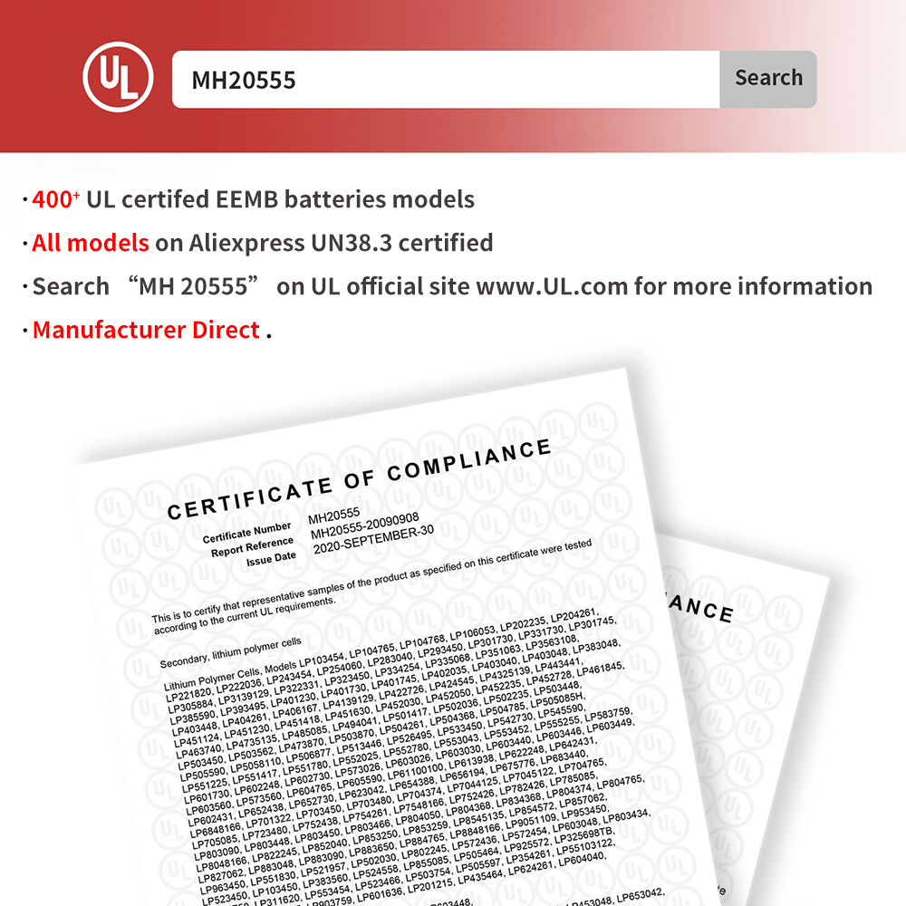 Аккумулятор EEMB 3,7 в 150 мАч 500 мАч 800 мАч 1000 мАч 1500 мАч 3,7 мАч в перезаряжаемый литий-полимерный аккумулятор