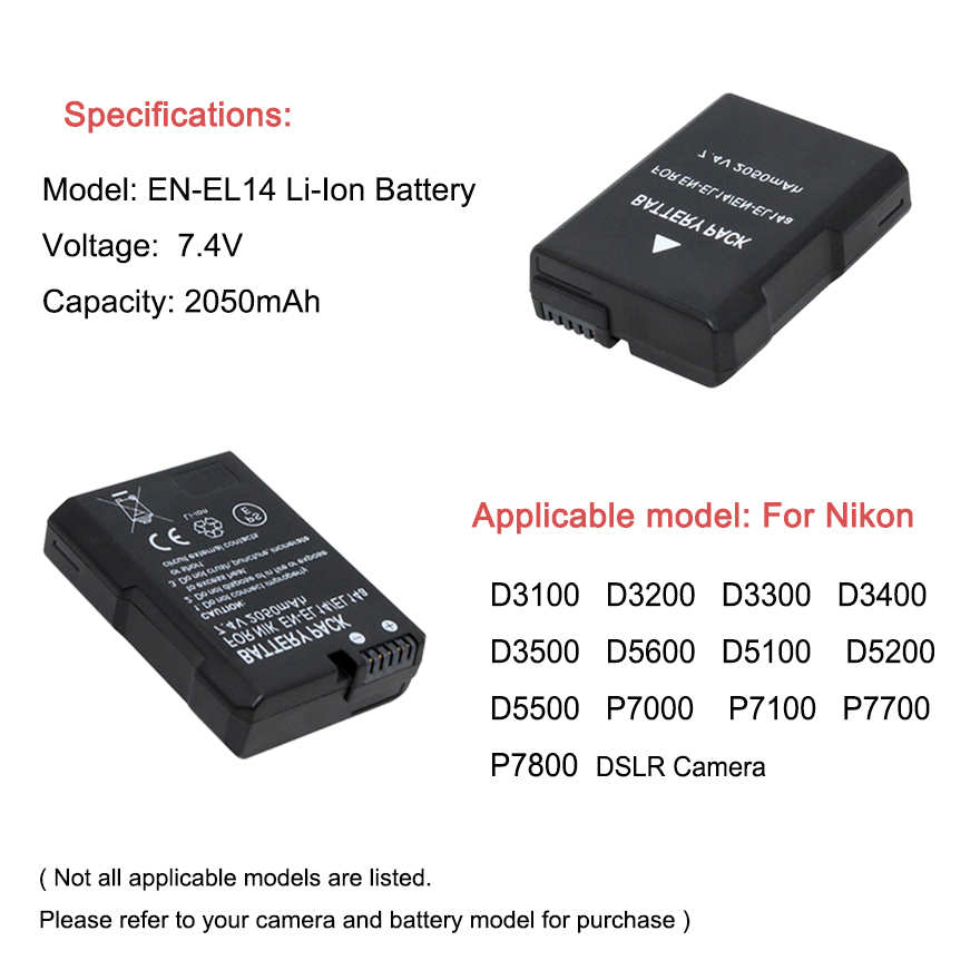 Аккумулятор EN-EL14 для камеры Nikon D3100 D3200 D3300 D3400 D5600 D5100 D5200 P7000 P7800
